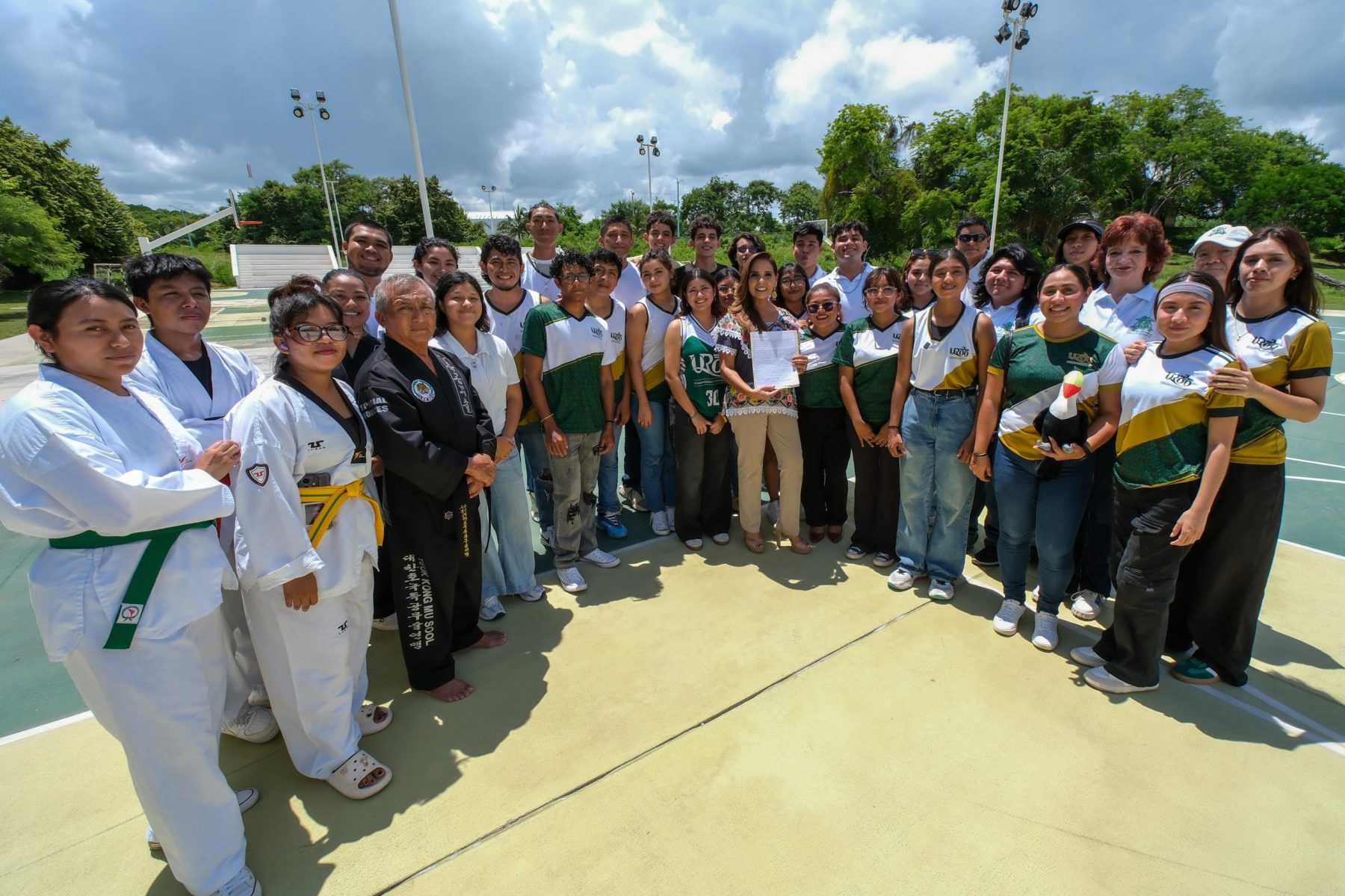 Acompañada de alumnas y alumnos, así como de la Rectora Natalia Florentini, la gobernadora de Quintana Roo respondió a una petición que le hicieran momento antes. “Con esta solicitud confirmo que vamos a construir el domo que tanto nos pidieron y que era un sueño esperado por las y los más de 2 mil 600 estudiantes”, citó Mara Lezama.