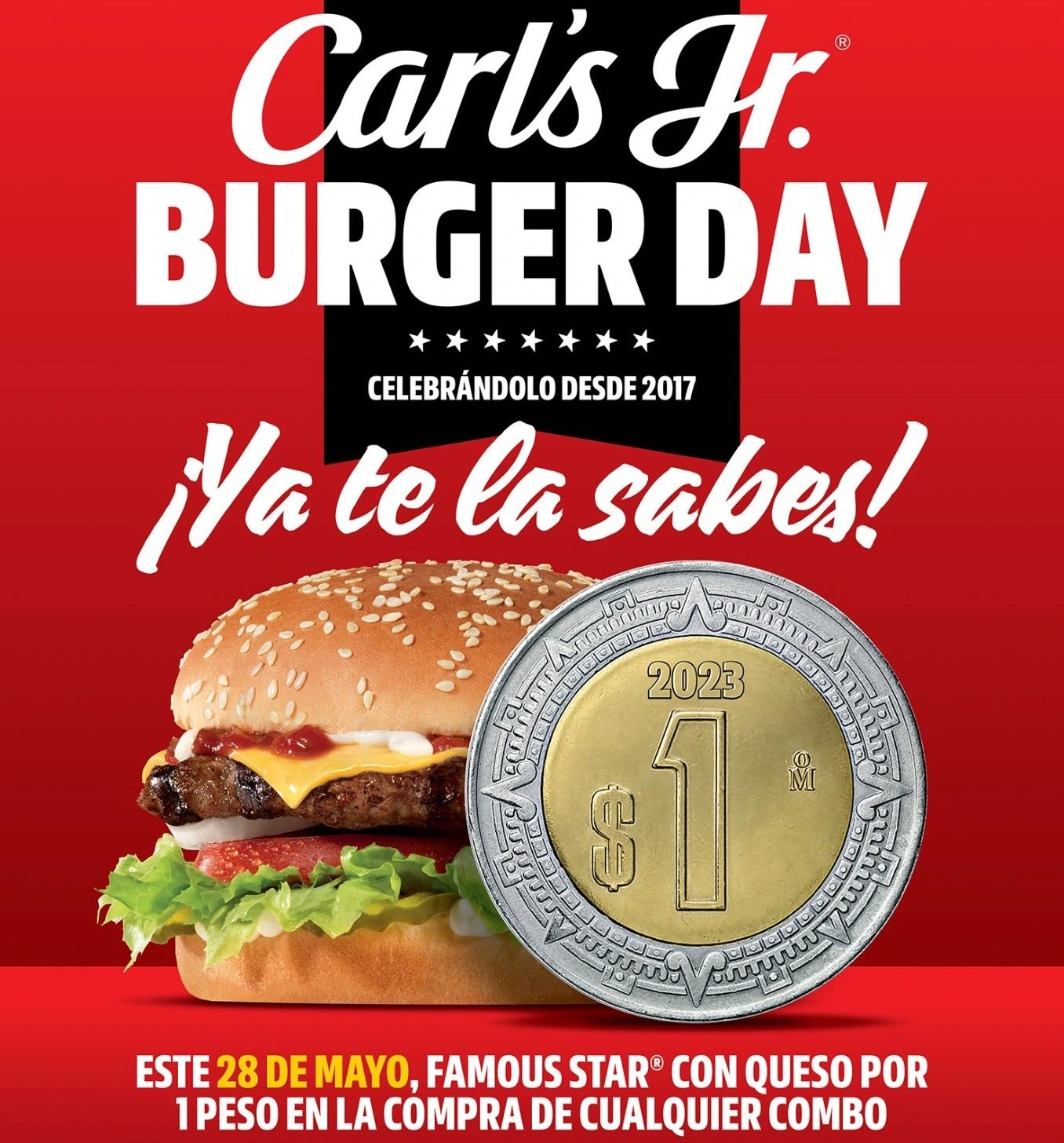 28 de Mayo, Día de la Hamburguesa 2025: Carl’s Jr Lanza Promoción Especial de Hamburguesa a Sólo 1 Peso