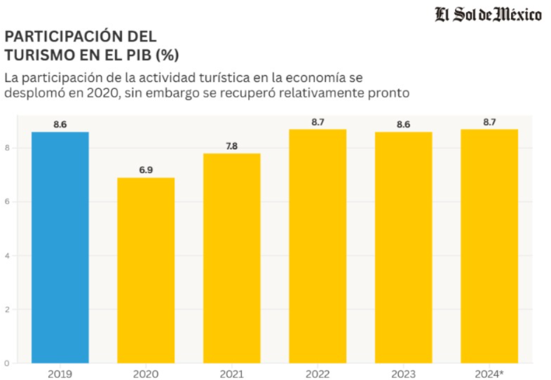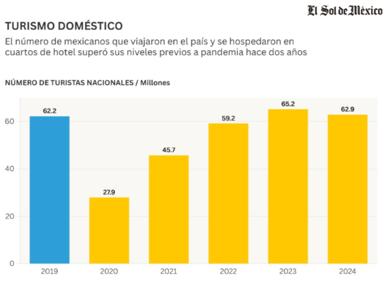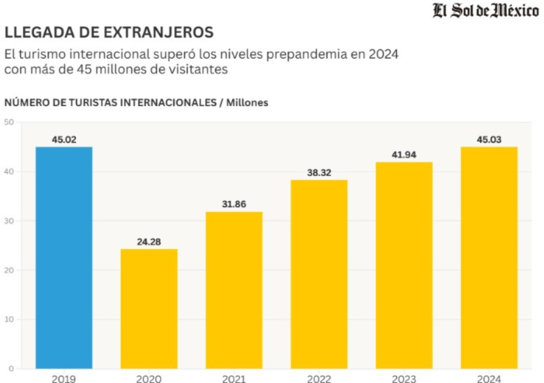 A cinco años del impacto de la pandemia de Covid-19 en México, el sector turístico, uno de los más impactados debido al cierre de fronteras y destinos para evitar los contagios, ya muestra una recuperación con cifras similares o por arriba de las registradas en 2019.