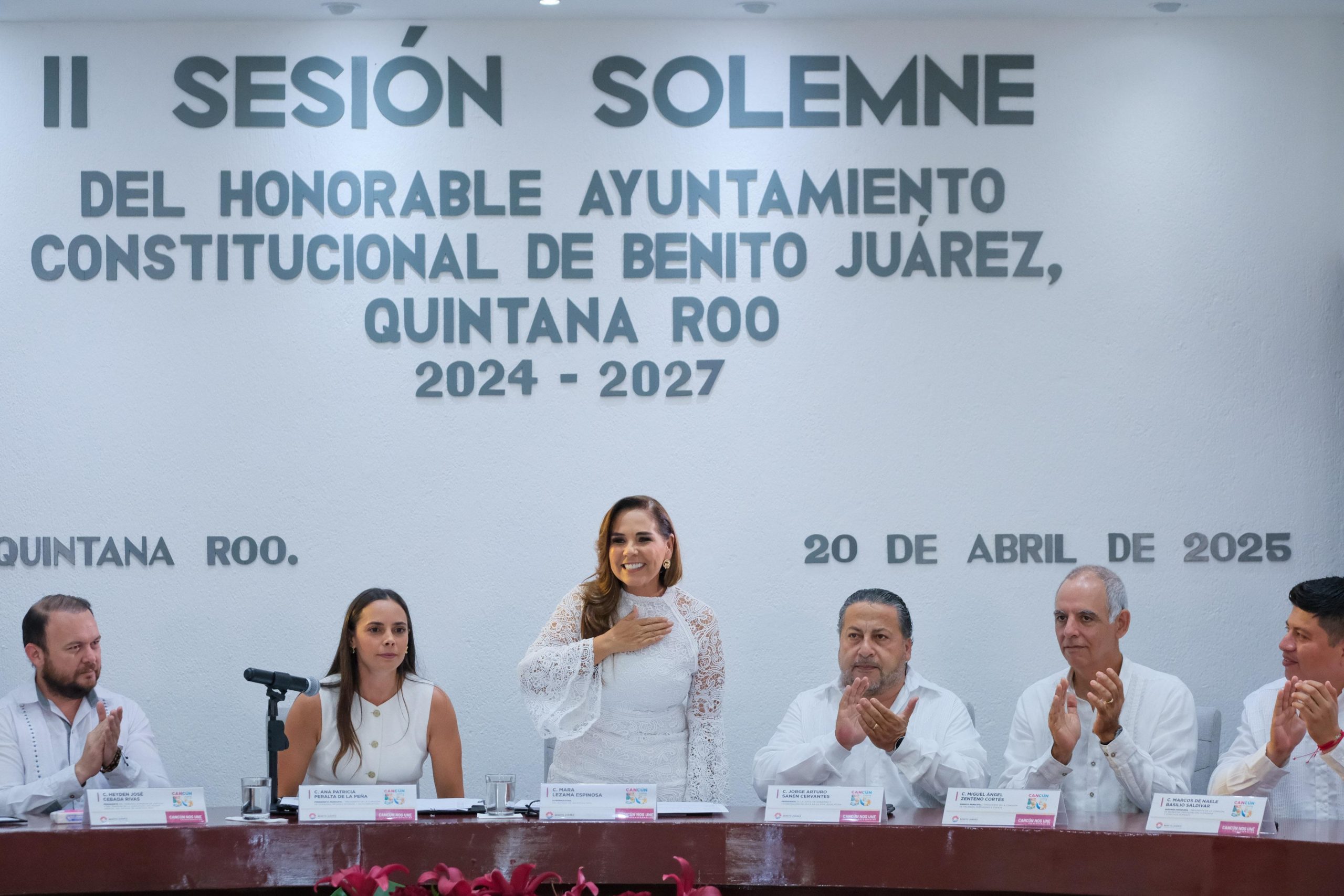 Al reconocer y agradecer el trabajo de los fundadores de Cancún, la presidenta Ana Paty Peralta afirmó que dejaron una gran huella, en una ciudad con carácter, identidad y corazón, que lucha todos los días para superar desafíos y abatir rezagos, de la mano con la gobernadora Mara Lezama.
