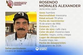 Rosendo Morales Alexander, de 70 años de edad, desapareció el pasado 15 de enero en Veracruz —el día de su cumpleaños— y desde entonces su hija Morales Yurisa ha denunciado el caso; a 10 días del caso prevalece la ausencia de las autoridades.
