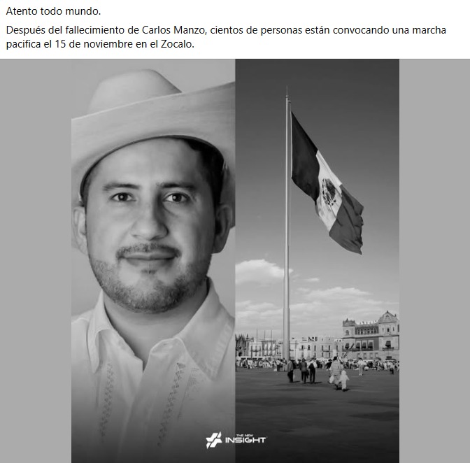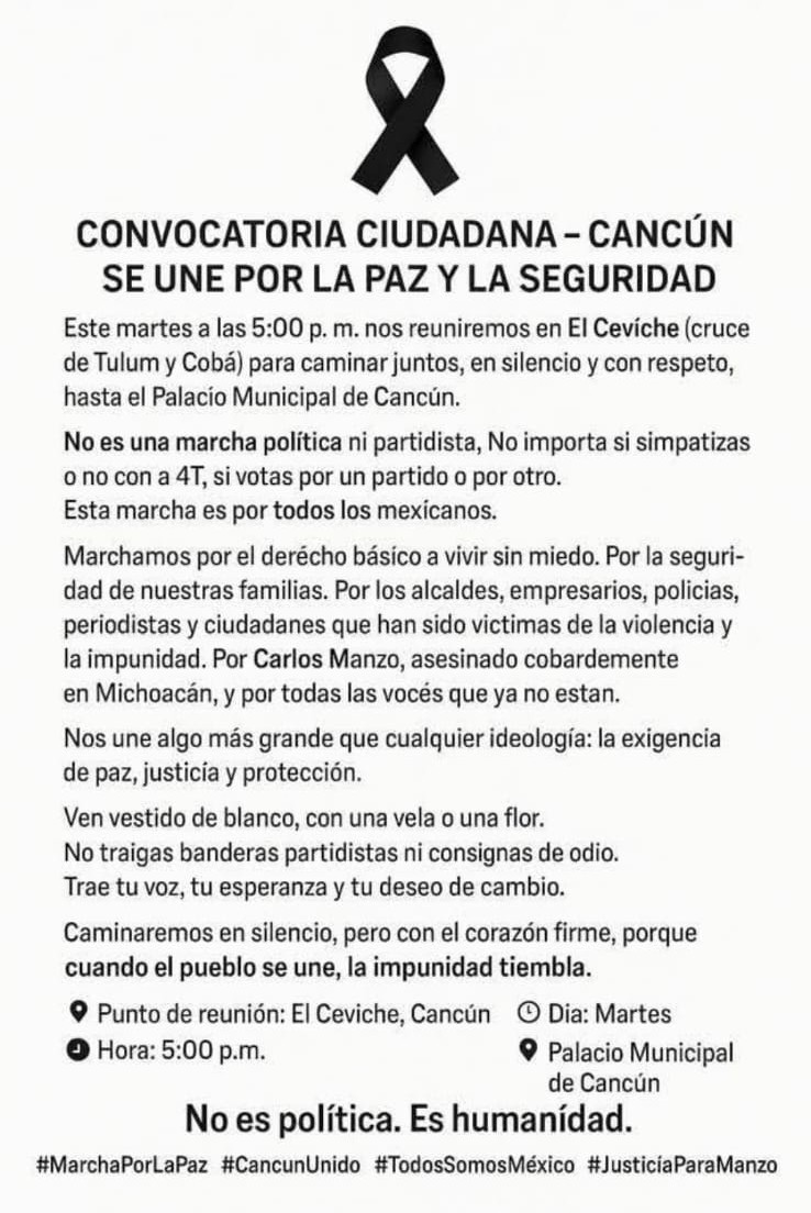 Varias ciudades michoacanas convocan nuevas marchas para honrar a Manzo y exigir justicia, en Uruapan (donde ocurrió el crimen), en la capital Morelia, así como en municipios del oriente como Zitácuaro y del occidente como Zamora.