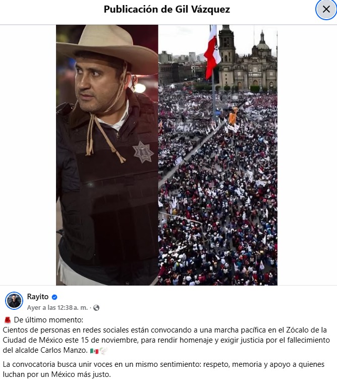 Estas convocatorias, difundidas inicialmente en Michoacán luego del atentado contra Carlos Manzo, han saltado de las redes al territorio nacional. Organizaciones civiles y usuarios reportan réplicas de la movilización “a lo largo y ancho” del país.