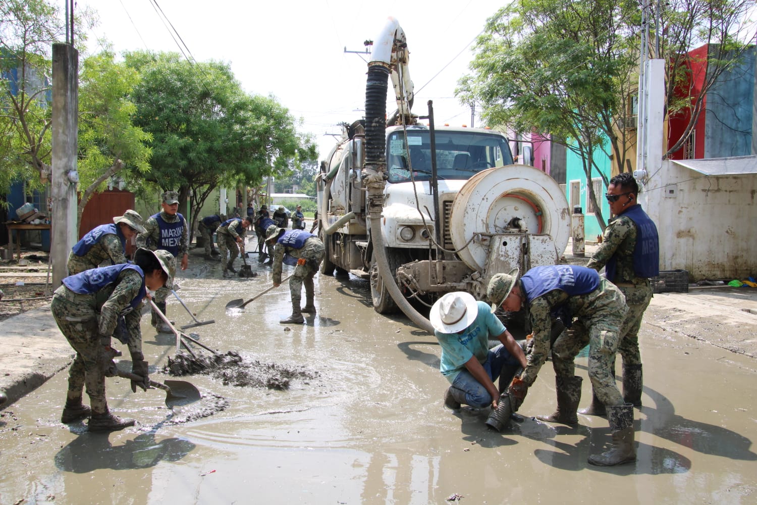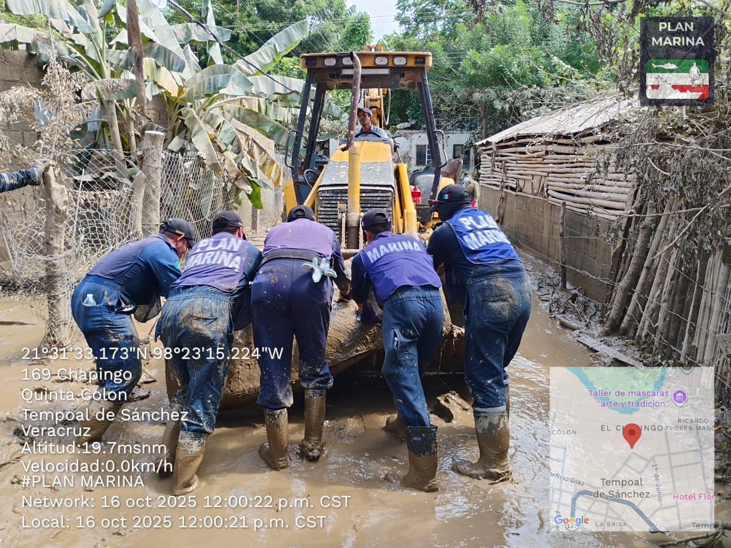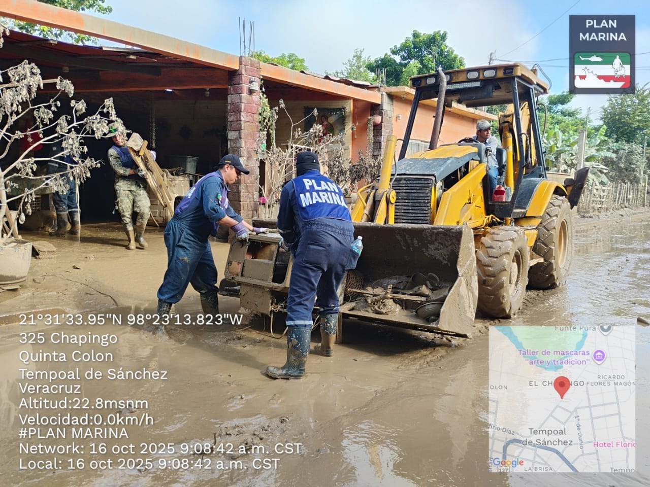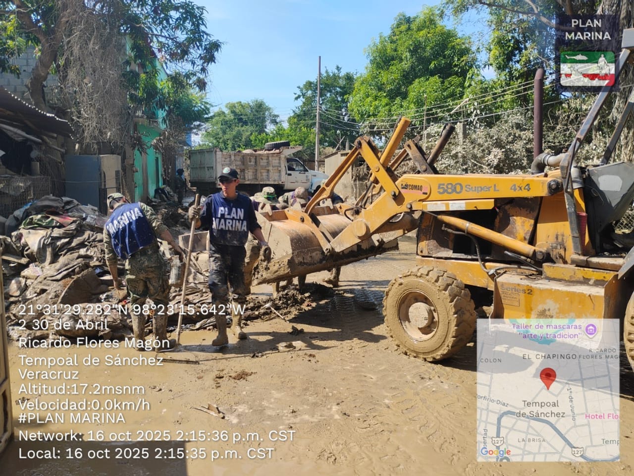Para lo anterior, la Secretaría de Marina cuenta con un despliegue de equipo mecanizado en Álamo, El Higo, Poza Rica y Tempoal, Veracruz, que permite mayores y mejores avances en la reactivación de la infraestructura pública y servicios básicos, para prevenir afectaciones mayores y restablecer las condiciones de seguridad e higiene, así como facilitar la distribución de ayuda humanitaria.