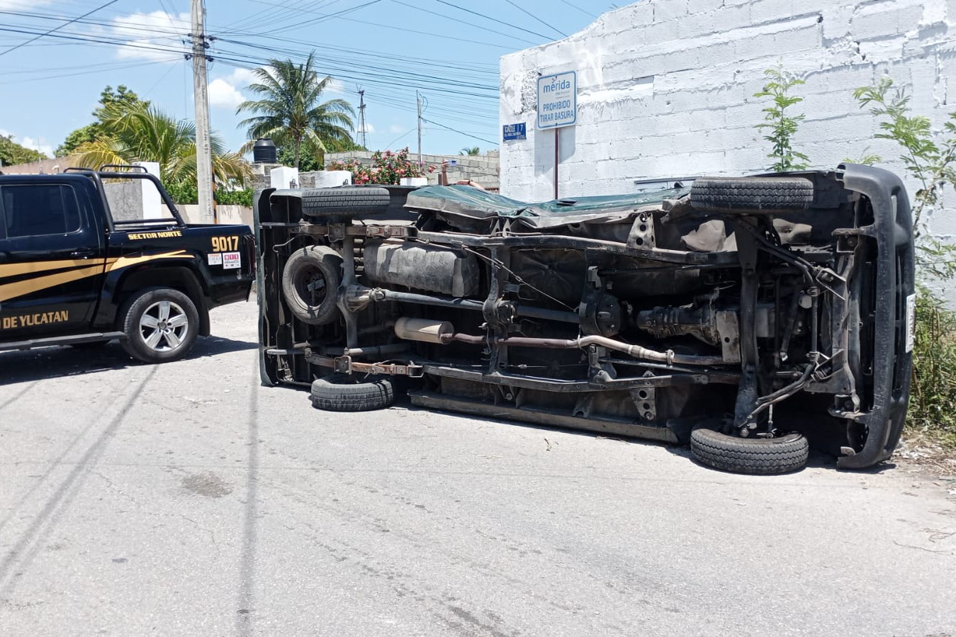 MÉRIDA, YUC. a 21 de agosto.- Daños materiales y tres personas lesionadas, una de las cuales tuvo que ser llevada a un hospital, fue el saldo de un choque con volcadura incluida, ocurrida esta mañana en calles de la colonia San Pedro Uxmal, en la zona norponiente de Mérida.