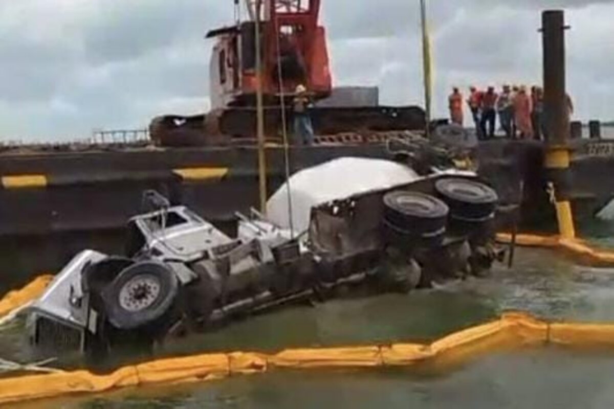 La mañana del viernes, un camión revolvedora de concreto cayó a las aguas de la Laguna Nichupté, un área de gran riqueza natural que conecta con el corazón turístico de Cancún.