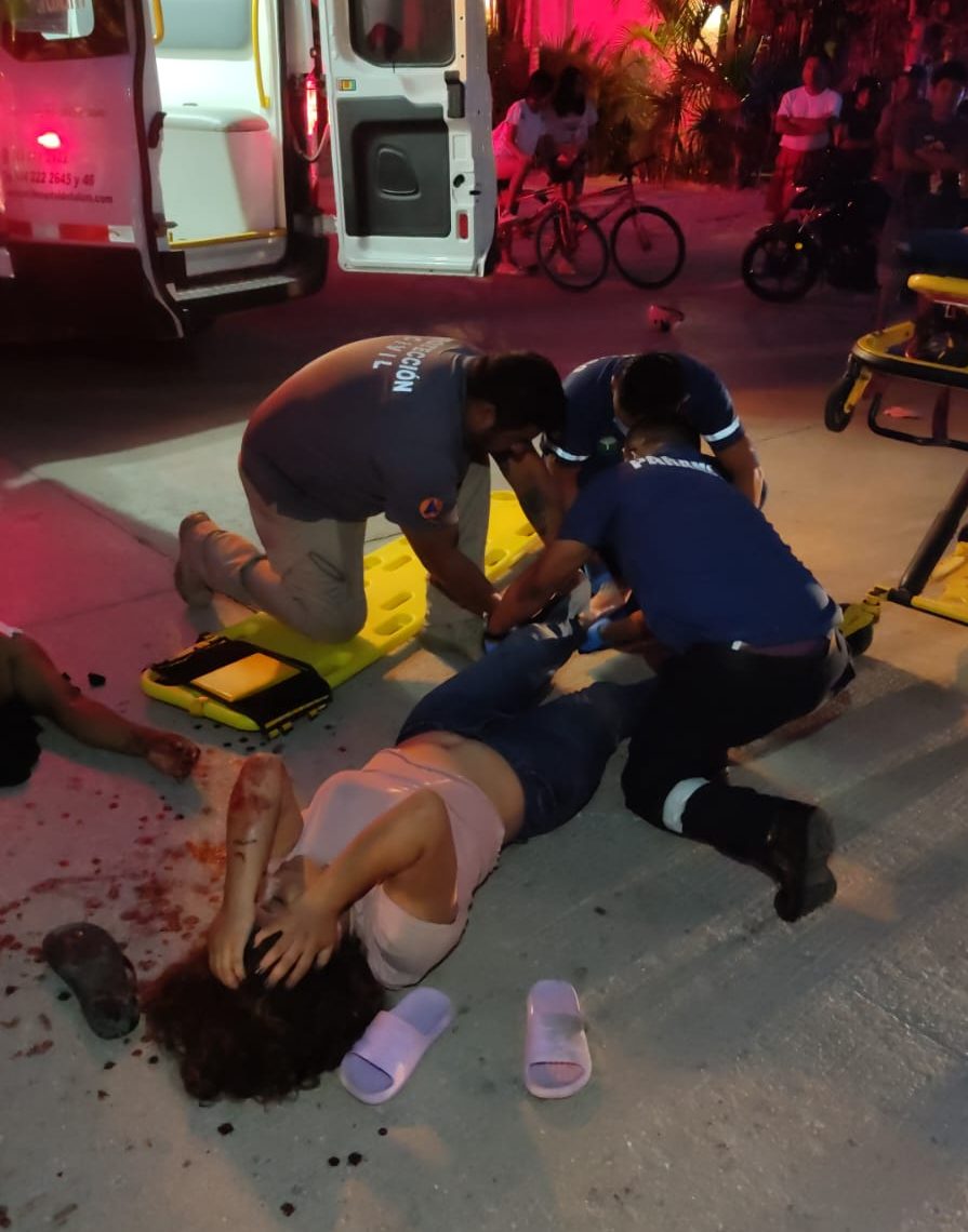 TULUM a 07 de septiembre. – La imprudencia volvió a cobrar factura en las calles de Aldea Zama. Un motociclista y su acompañante resultaron lesionados luego de impactar contra una camioneta que presuntamente no respetó el alto en la intersección de avenida Juanek con calle Kabah.