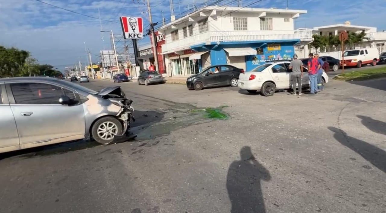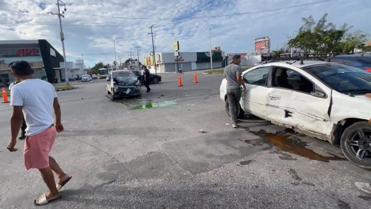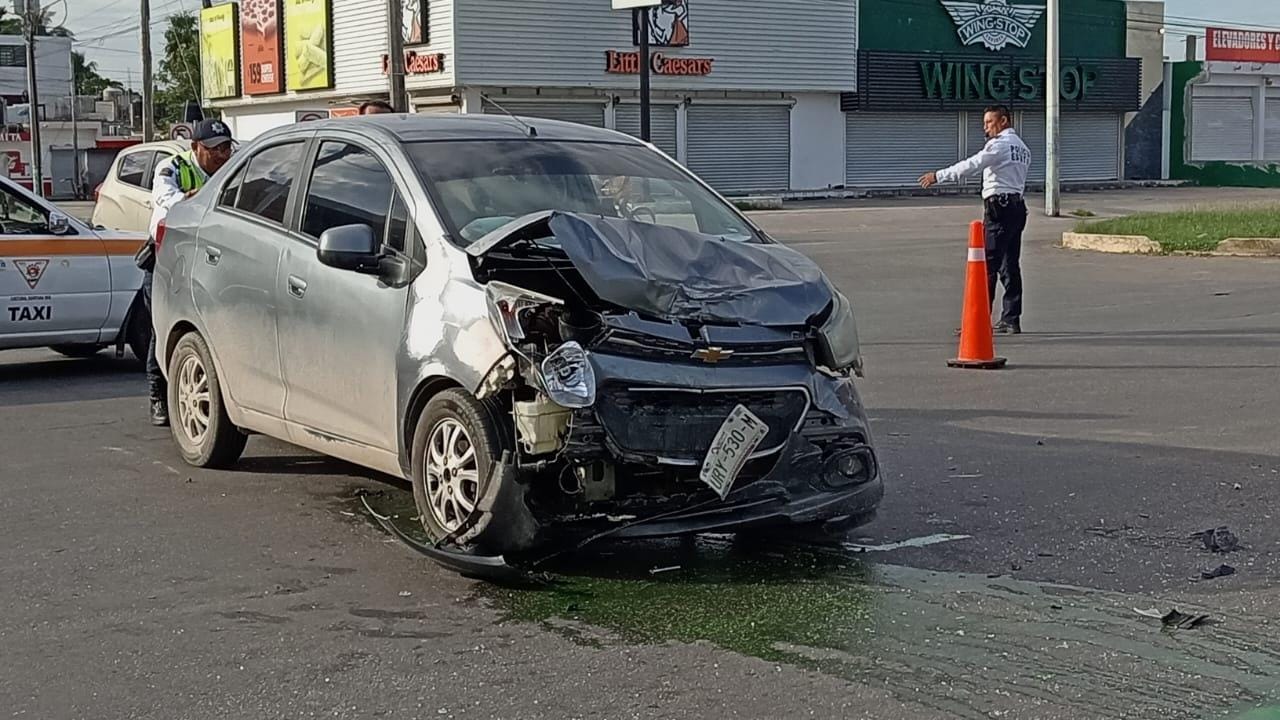 CHETUMAL, 25 de diciembre. – Un fuerte accidente vehicular se registró en el cruce de las avenidas Insurgentes y Palermo, en Chetumal, donde dos automóviles, un Chevrolet compacto de color gris y un Dodge Neón blanco, colisionaron, dejando como saldo una mujer lesionada y cuantiosos daños materiales.