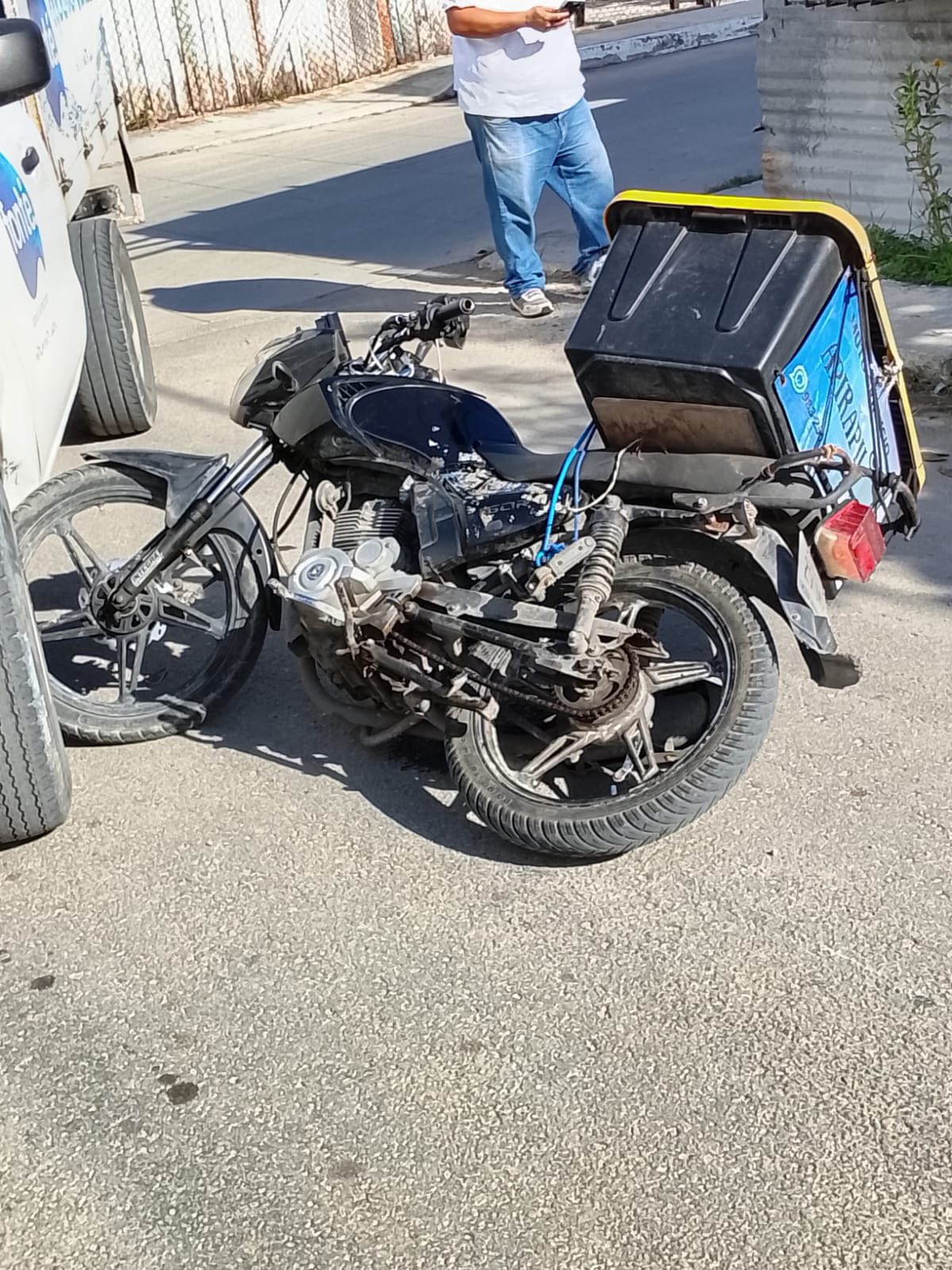 De acuerdo con testigos, el hecho ocurrió cuando una camioneta Nissan de color blanco fue impactada en el costado izquierdo por una motocicleta que circulaba en dirección contraria. La imprudencia y la falta de precaución de alguno de los involucrados habría sido el origen del choque. El golpe provocó que la portezuela de la camioneta resultara abollada, además de afectaciones menores en la motocicleta.