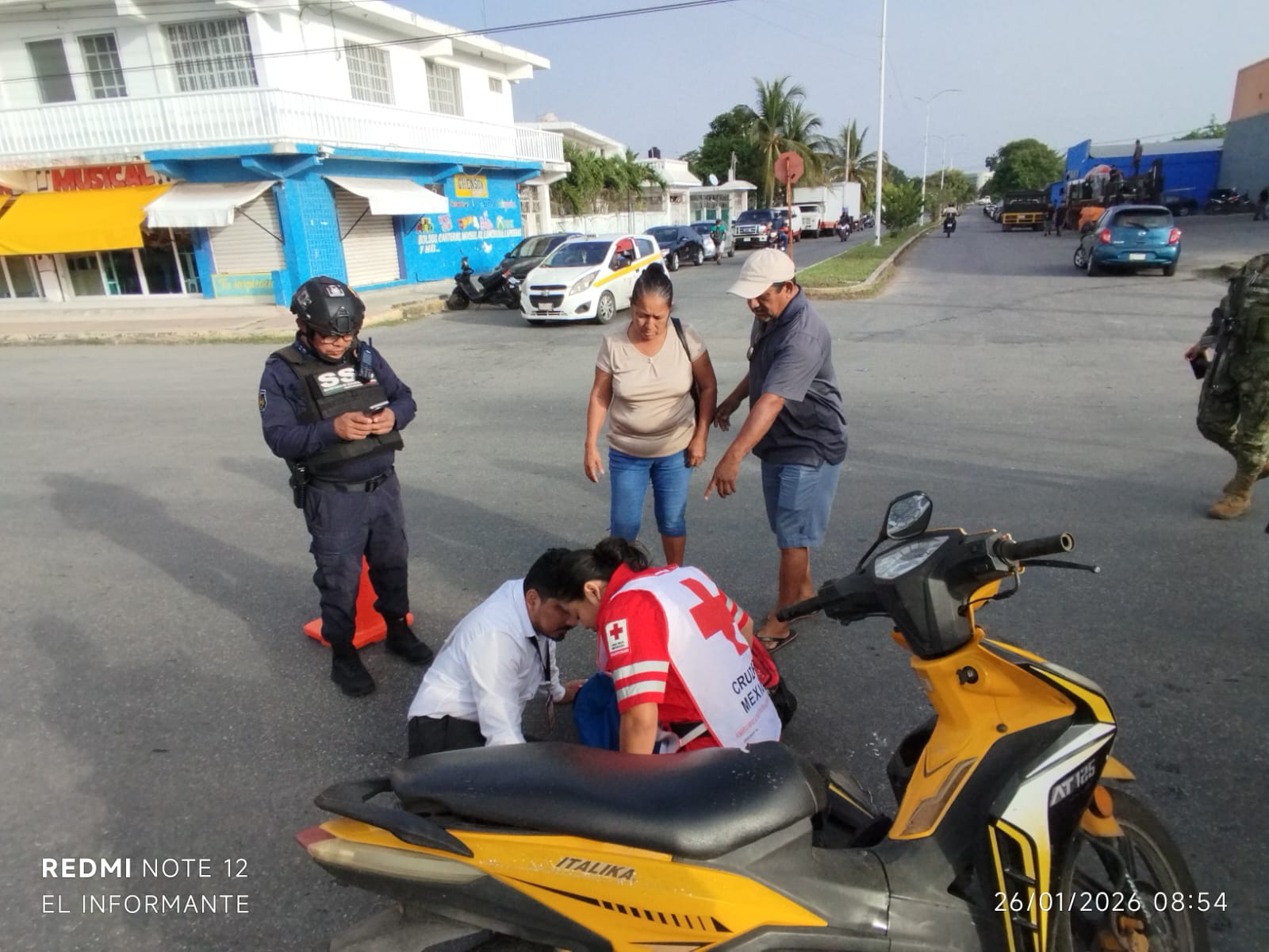 A consecuencia del impacto, el conductor de la motocicleta resultó con lesiones de consideración y no pudo incorporarse por sus propios medios, por lo que fue necesaria la intervención inmediata de los servicios de emergencia. Paramédicos de la Cruz Roja arribaron al sitio para brindarle atención prehospitalaria, estabilizarlo y valorar su condición física antes de determinar su traslado a un centro médico para una revisión más especializada.