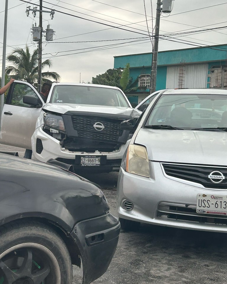 Accidente Involucra Tres Autos en el Cruce de la Avenida Nápoles e Isla Cancún, en Chetumal