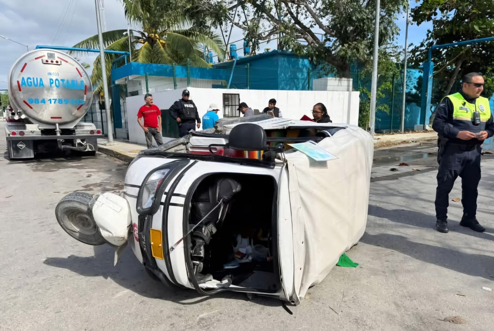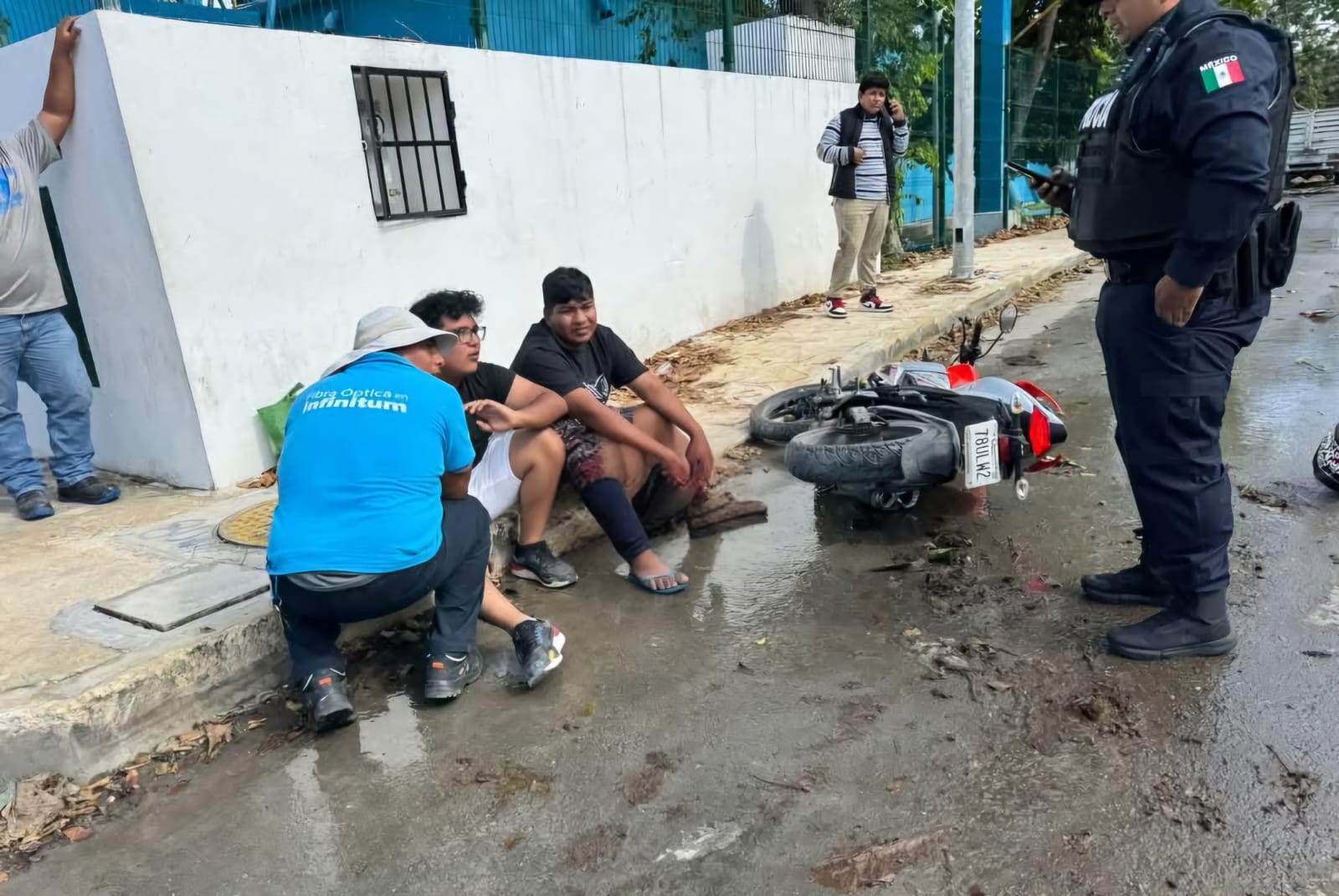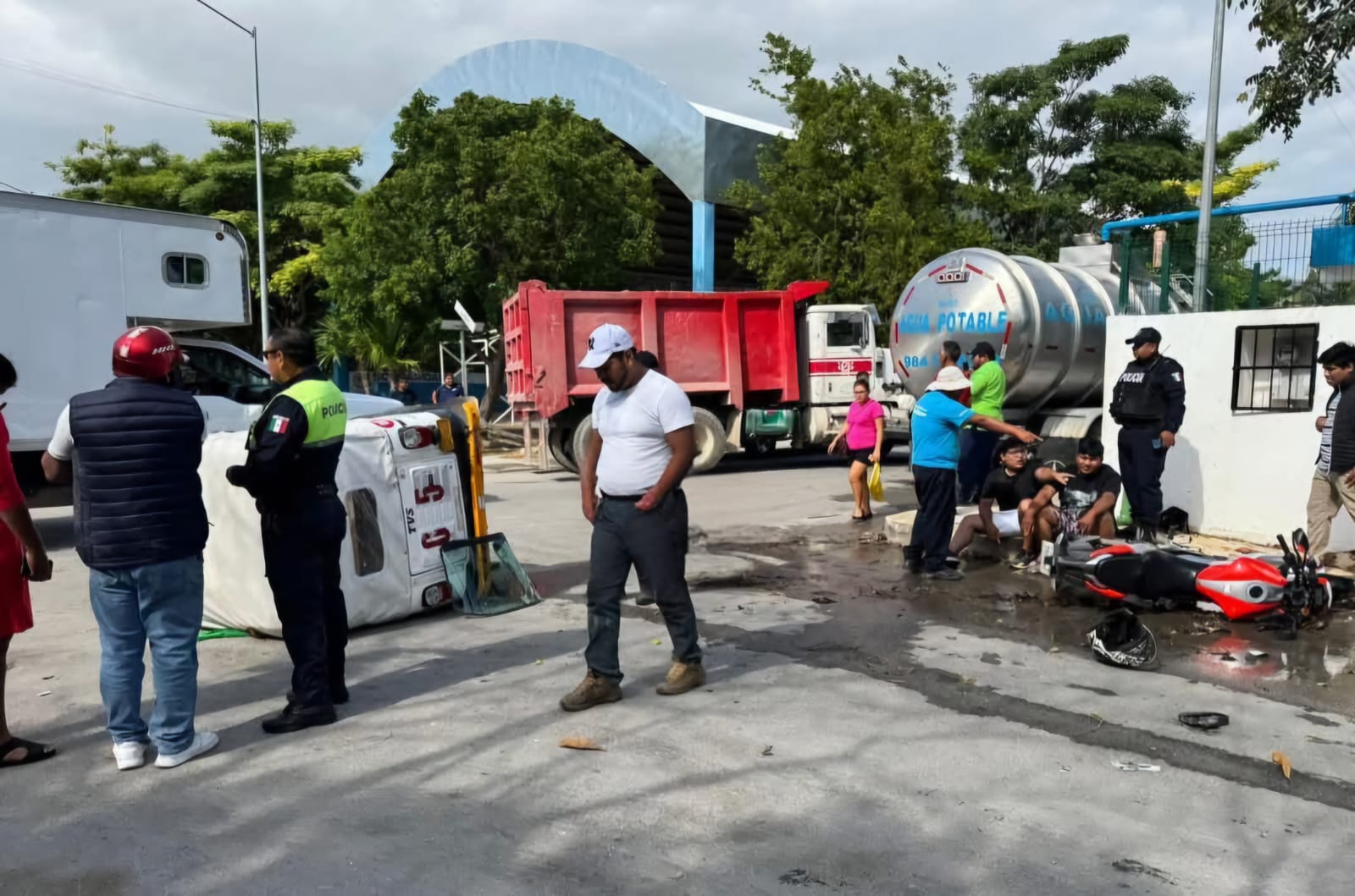 Playa del Carmen, a 12 de diciembre. – Por no respetar la preferencia de la avenida, joven motociclista termina lesionado junto a su acompañante al impactarse con un mototaxi al cual del impacto terminó volteado de lado, todo esto ocurrido en calles de la colonia Ejidal esta tarde de jueves.