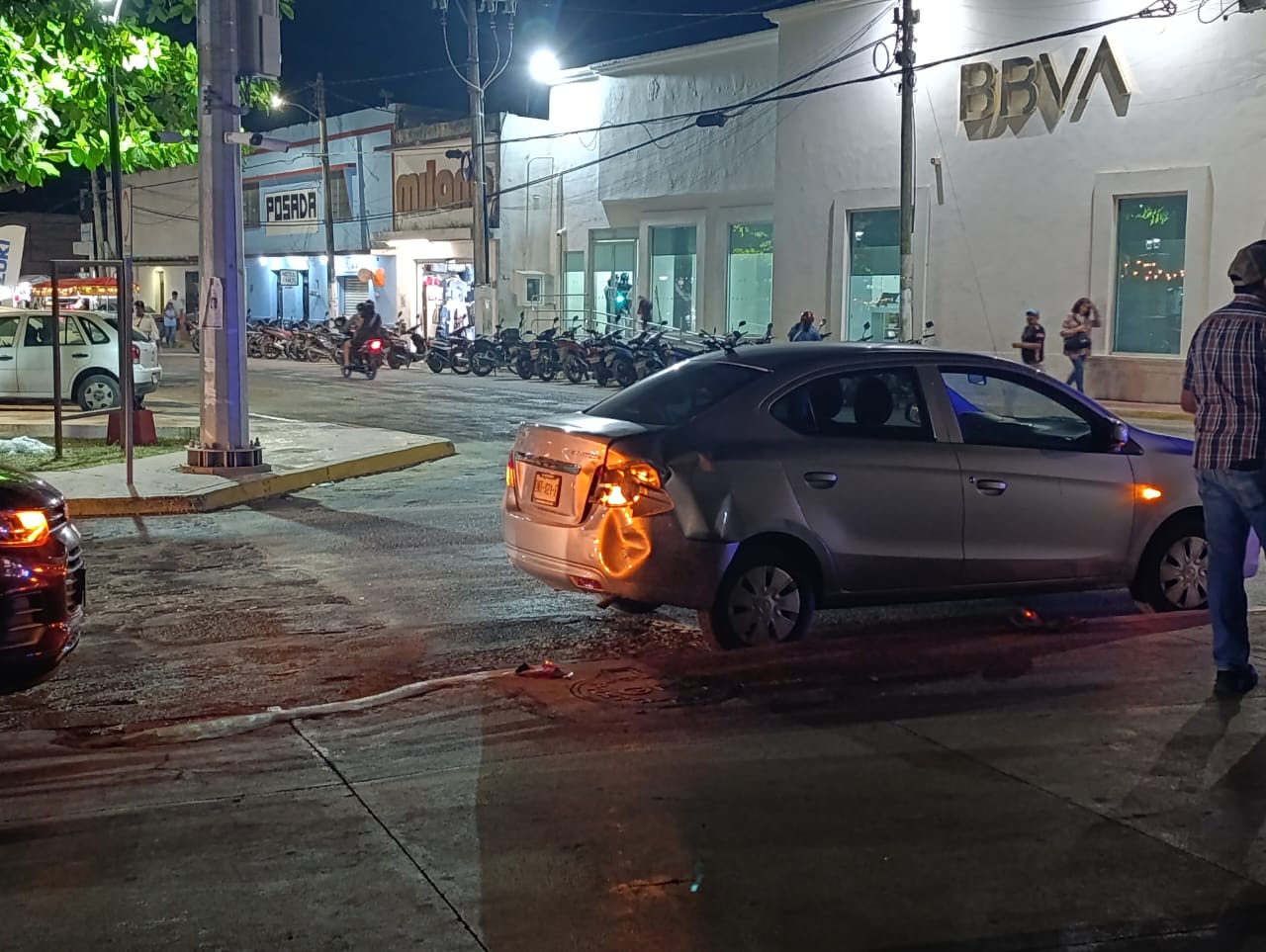Tizimín Yucatán, 18 de marzo.– Un accidente vehicular ocurrido la noche de este martes en el centro de Tizimín generó congestionamiento vial luego de que un conductor impactara la parte trasera de otro automóvil en las inmediaciones del Parque Benito Juárez.