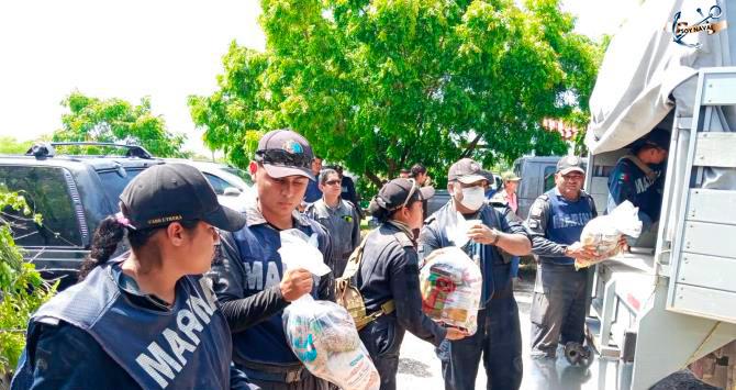 Para lo anterior, se han desplegado un total de 4,372 elementos navales, mismos que brindan apoyos en Matamoros, Tamaulipas, Ejido González, Aldama, Tamps., Ejido Verde Grande, Soto la Marina, Tamps., Ejido El Socialista, Soto la Marina, Tamps., Ejido Las Guayabas, Soto la Marina, Tamps., Santo Domingo del Charco Largo, Soto la Marina, Tamps.