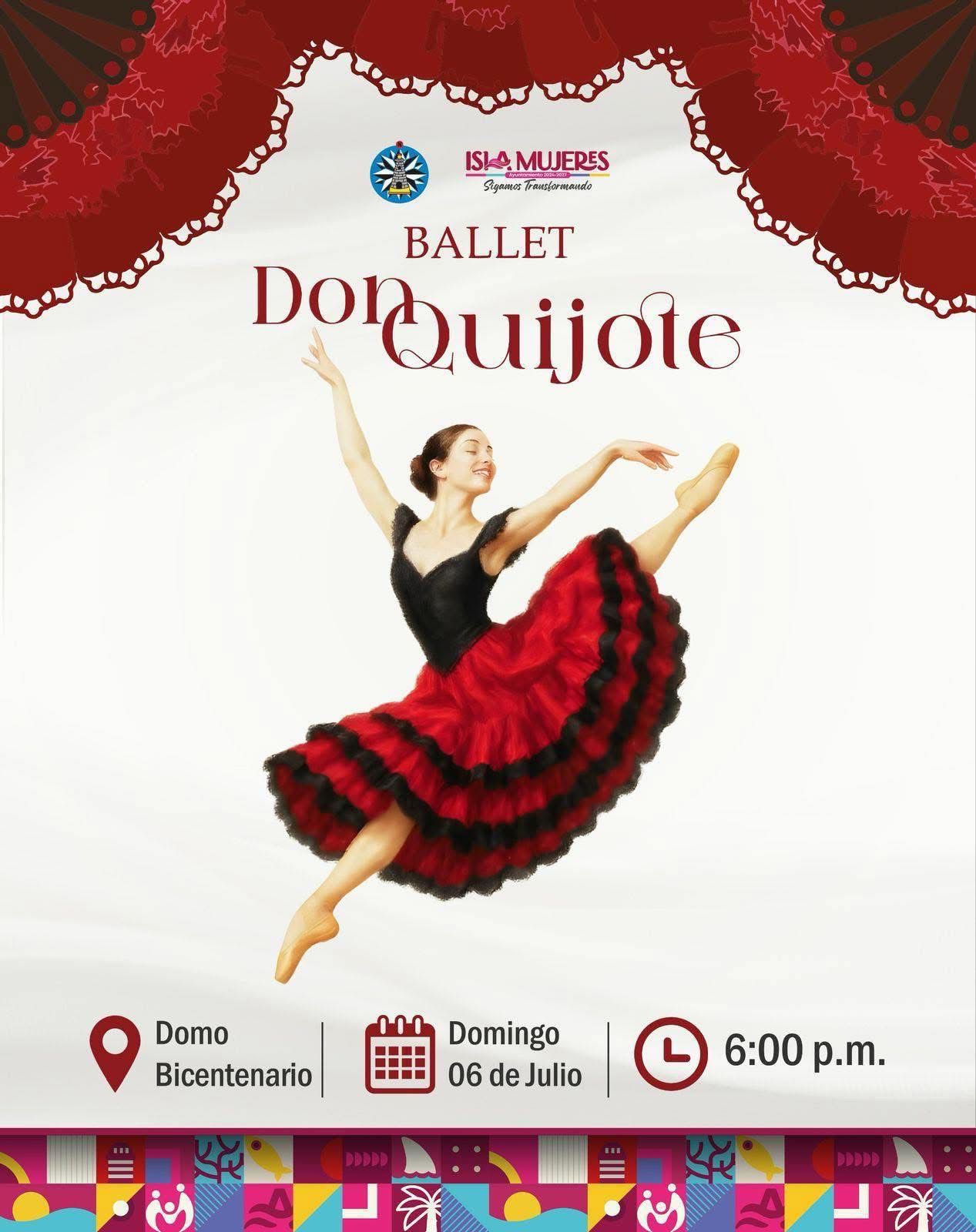 Isla Mujeres, Quintana Roo, 3 de julio de 2025.- Como parte de las acciones permanentes para acercar la cultura y el arte a todas las colonias del municipio, el Ayuntamiento de Isla Mujeres, que encabeza la Presidenta Municipal, Atenea Gómez Ricalde, presentará este domingo 6 de julio el ballet “Don Quijote” a cargo de Ballet Concierto Cancún, en el marco de su Gala de XV Aniversario.