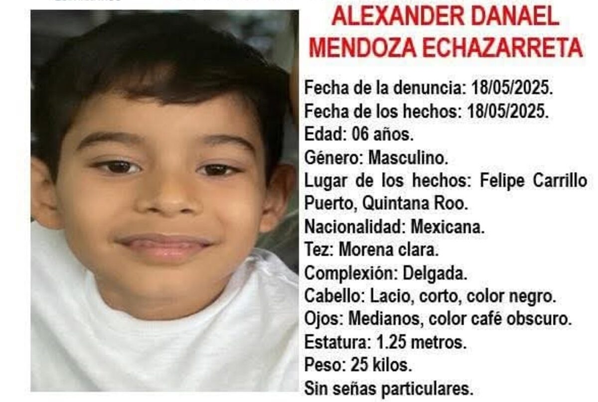 Alexander Danael Mendoza Echazarreta, de 6 años, fue visto por última vez el pasado 18 de mayo en el municipio de Felipe Carrillo Puerto; autoridades temen que haya sido víctima de un delito.