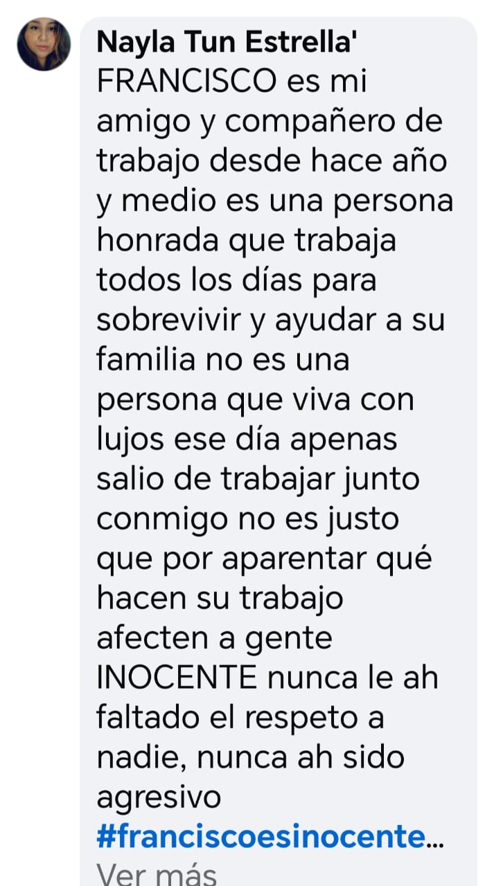 Otro caso que ha causado indignación es el de Francisco N., un joven trabajador que, de acuerdo con amigos y compañeros, había terminado su jornada laboral y se encontraba durmiendo cuando fue sorprendido por los uniformados, quienes lo arrestaron sin explicación y sin presentar documento alguno.