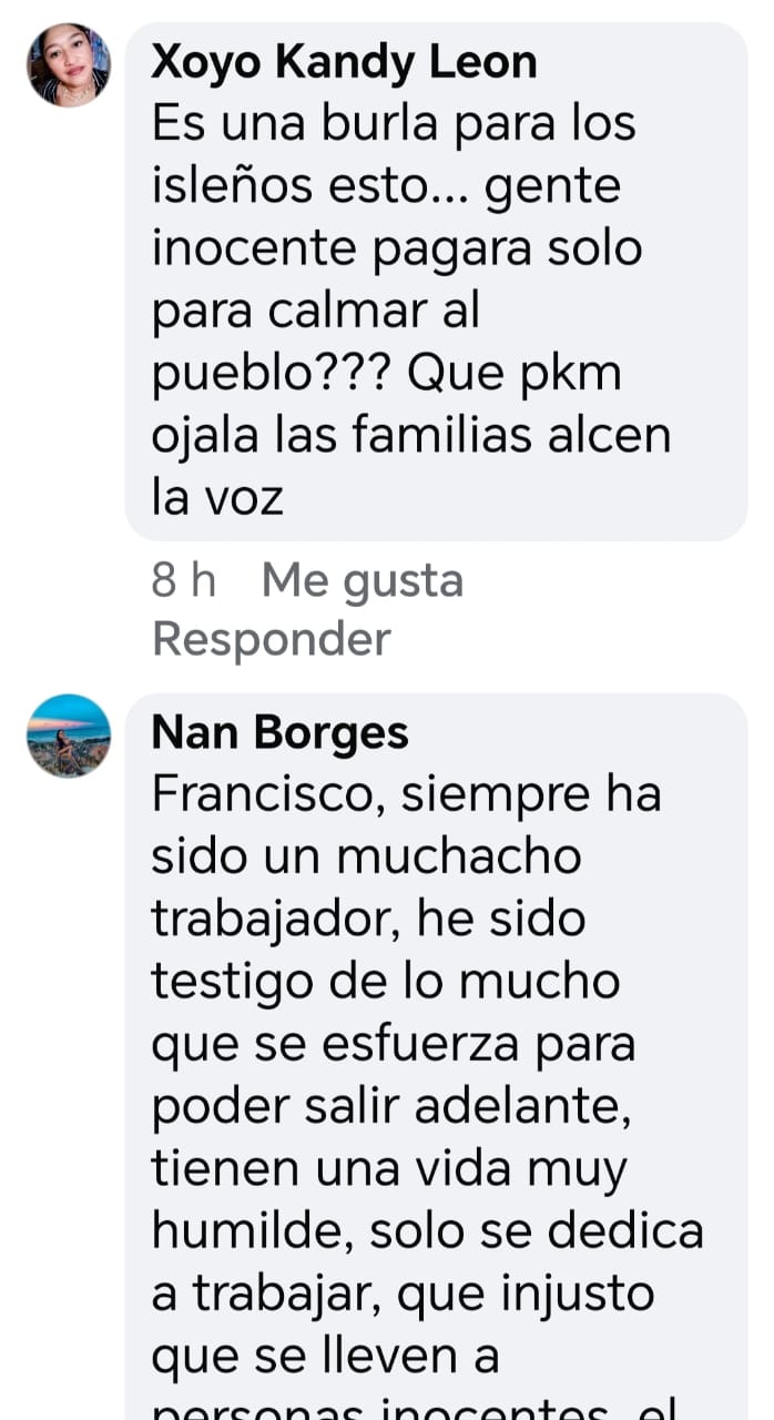 El reclamo es generalizado: que se realice una investigación inmediata de las personas que llevan una vida honrada en la isla, para que sean liberados a la brevedad y que se castigue a los verdaderos culpables.