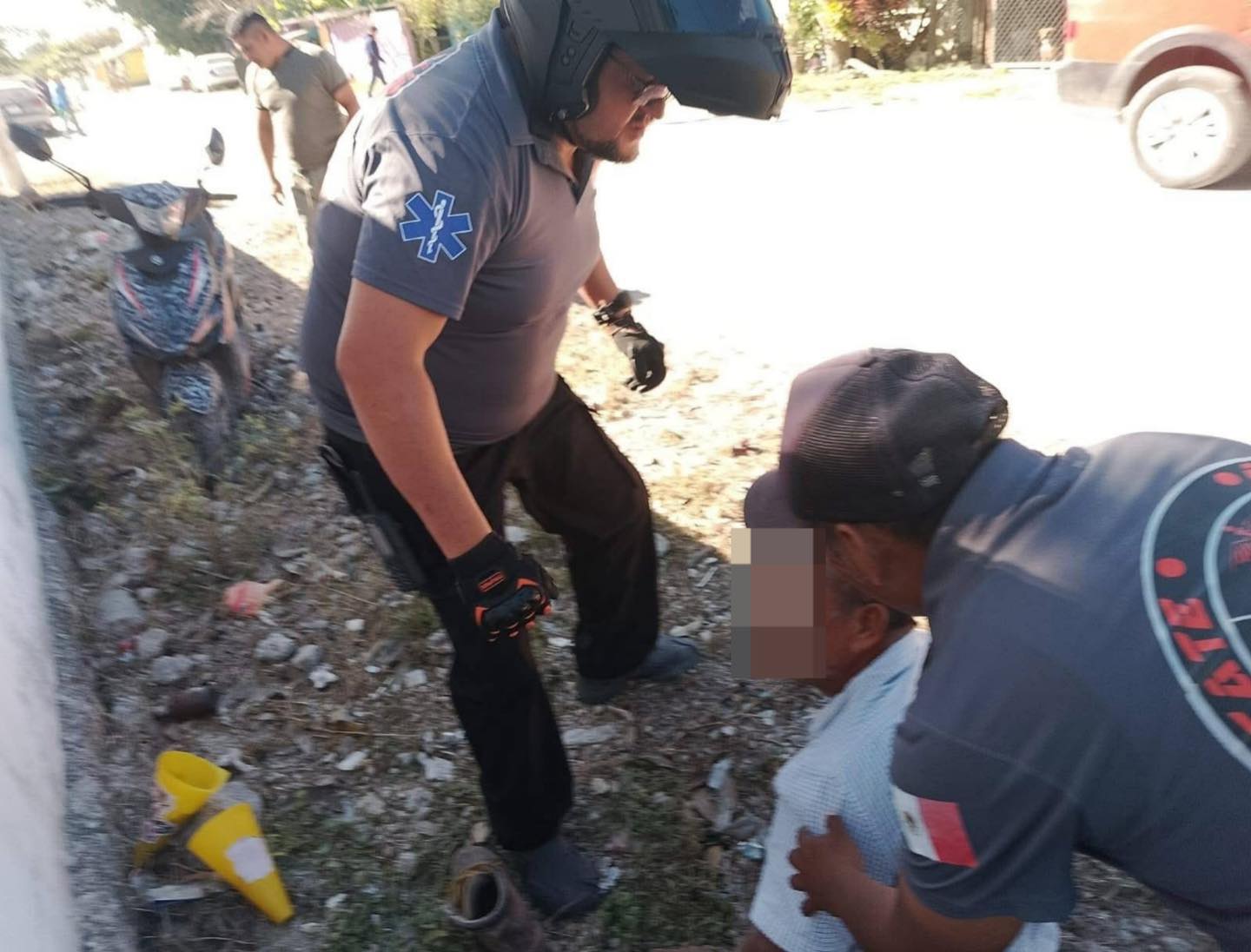 Adulto Mayor Sufre Fuerte Caída en Motocicleta en Huay Pix
