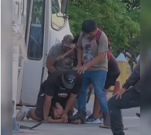 #CAMPECHE | A punta de golpes y con objetos fue bajado un usuario de un camión urbano en el paradero del mercado principal, Pedro Sainz de Baranda, sobre la prolongación Tabasco del centro de la ciudad.