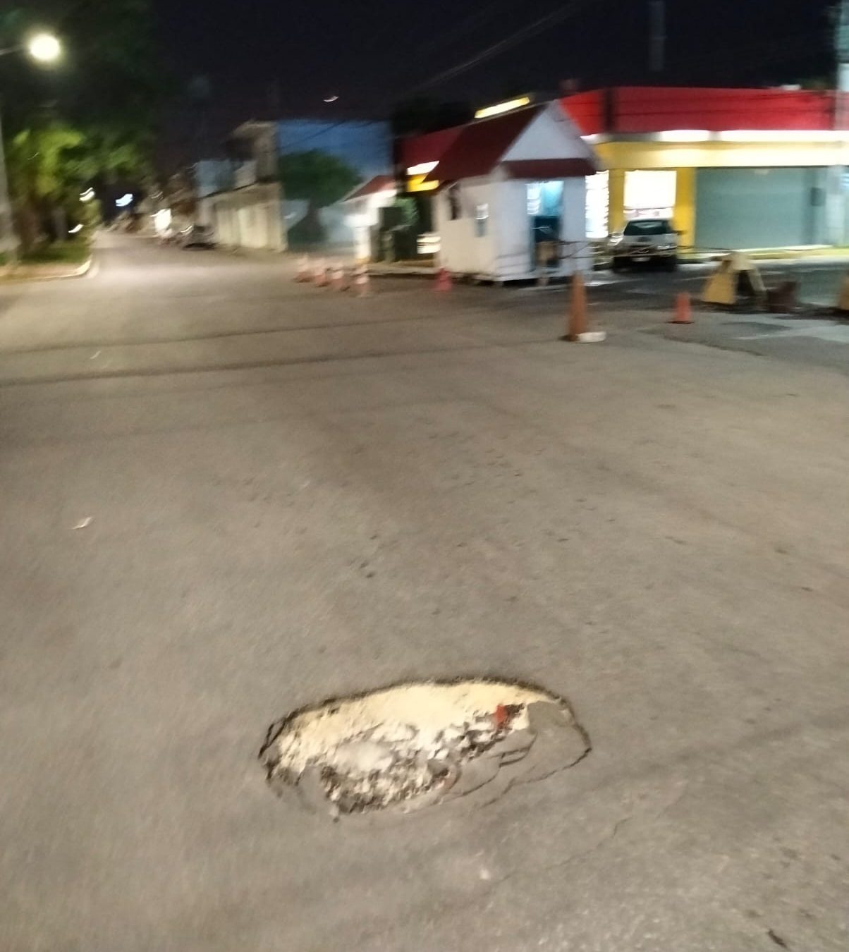 CHETUMAL, 18 de noviembre. – Un enorme agujero ubicado en el cruce de las avenidas Carmen Ochoa de Merino y Benito Juárez se convirtió en un riesgo permanente para automovilistas y peatones, sin que hasta ahora el Ayuntamiento de Othón P. Blanco atienda los reportes ciudadanos. El hueco, visible a simple vista y cada vez más amplio por efecto de las lluvias recientes, ha provocado molestia entre habitantes y trabajadores de la zona.