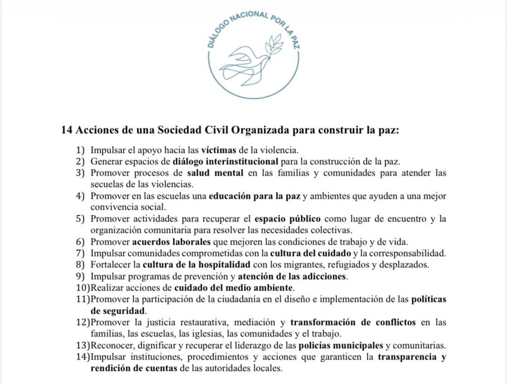A través del Diálogo Nacional por la Paz, se llama a la ciudadanía cansada del miedo, las extorsiones y la inseguridad a movilizarse desde sus ciudades y localidades, para demandar acciones a los gobierno, tras el asesinato del alcalde de Uruapan Carlos Manzo