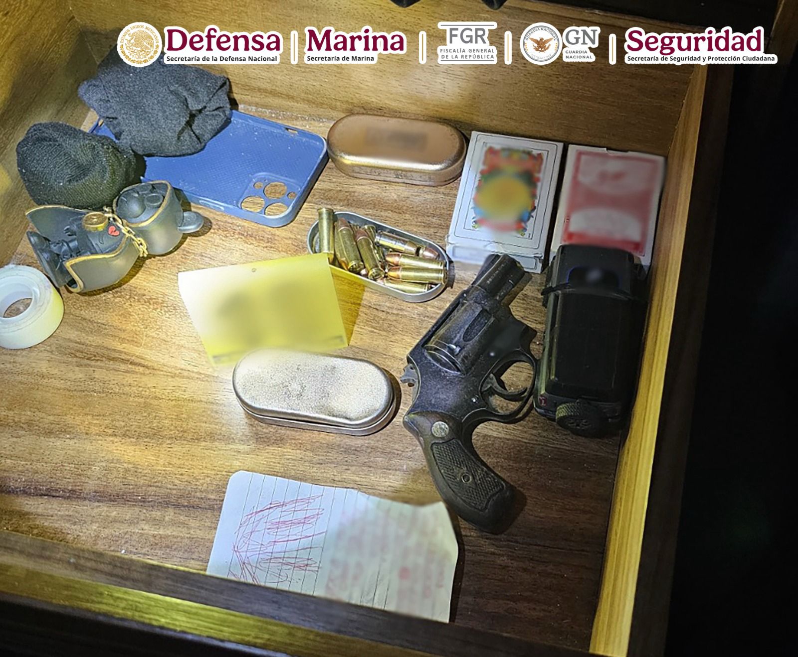 Fue así que se desplegó un operativo coordinado y se ejecutó la orden de cateo, donde fue detenida María del Rosario “N”, junto con otro hombre, además en el predio se aseguraron dos armas de fuego, dosis de droga y equipos de telecomunicación.