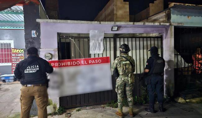 La primera diligencia tuvo lugar en un domicilio ubicado en la calle Margaritas del fraccionamiento Villas Otoch Paraíso de la Supermanzana, donde los elementos participantes aseguraron bolsitas que contenían hierba color verde similar a la marihuana y fragmentos sólidos de material cristalino, parecido al cristal, una de las colonias de mayor consumo de drogas entre niños y jóvenes.