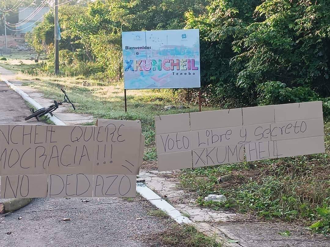 La comunidad de Xkuncheil cerró el acceso al poblado, denunciando que el ayuntamiento no registró a todos sus candidatos, lo que generó un ambiente de inconformidad y molestia entre los habitantes.