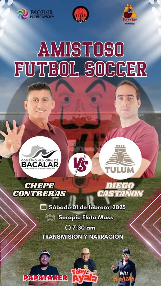 Bajo el lema de la sana competencia y el compañerismo, Bacalar y Tulum demostrarán que no existe rivalidad entre municipios con un balón de por medio. El evento es de entrada libre y promete convertirse en un referente para futuras actividades deportivas entre gobiernos locales. El balón rodará en Bacalar y, más allá del marcador final, lo más importante será la convivencia y la promoción del deporte como una herramienta de unión y bienestar social.