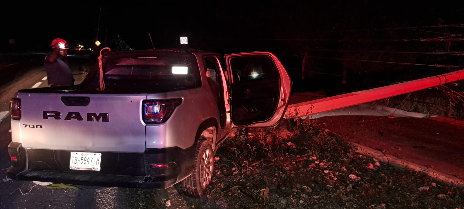 El accidente ocurrió poco después de la medianoche. De acuerdo con el reporte de emergencias, una camioneta pick up, marca Ron 700 con placas TB-5847-M, se impactó contra un poste y terminó sobre el camellón central. La unidad fue encontrada abandonada, con varias latas de cerveza en su interior, lo que apunta a que el conductor habría estado en estado de ebriedad y posteriormente huyó del sitio.