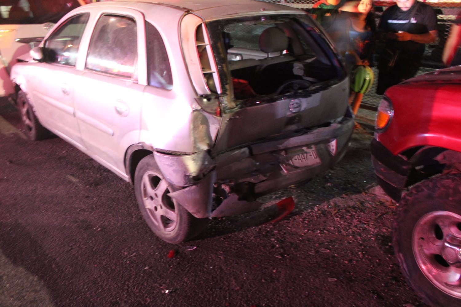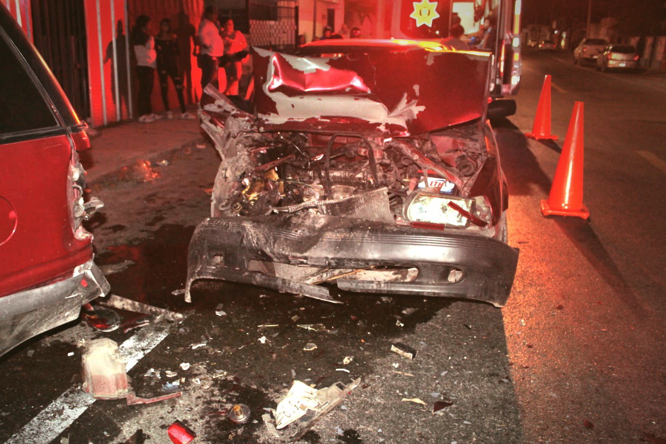 El Tsuru era conducido sobre Circuito Colonias, y a la altura de la calle 62 el ebrio conductor perdió el control del volante, se fue hacia la derecha y se estrelló contra una camioneta estacionada. Ésta se proyectó contra el Chevy que tenía adelante, el cual a su vez se fue al frente hasta golpear una camioneta Avanza. Todos los vehículos estaban detenidos junto a la banqueta.