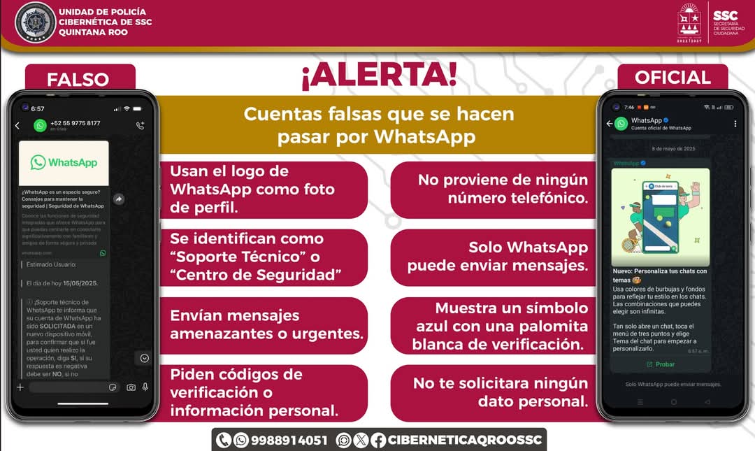Cancún, 16 de mayo. – La Unidad de Policía Cibernética del estado de Quintana Roo, lanzó una alerta a la ciudadanía ante un nuevo modus operandi utilizado por ciberdelincuentes para tomar el control de cuentas de WhatsApp.