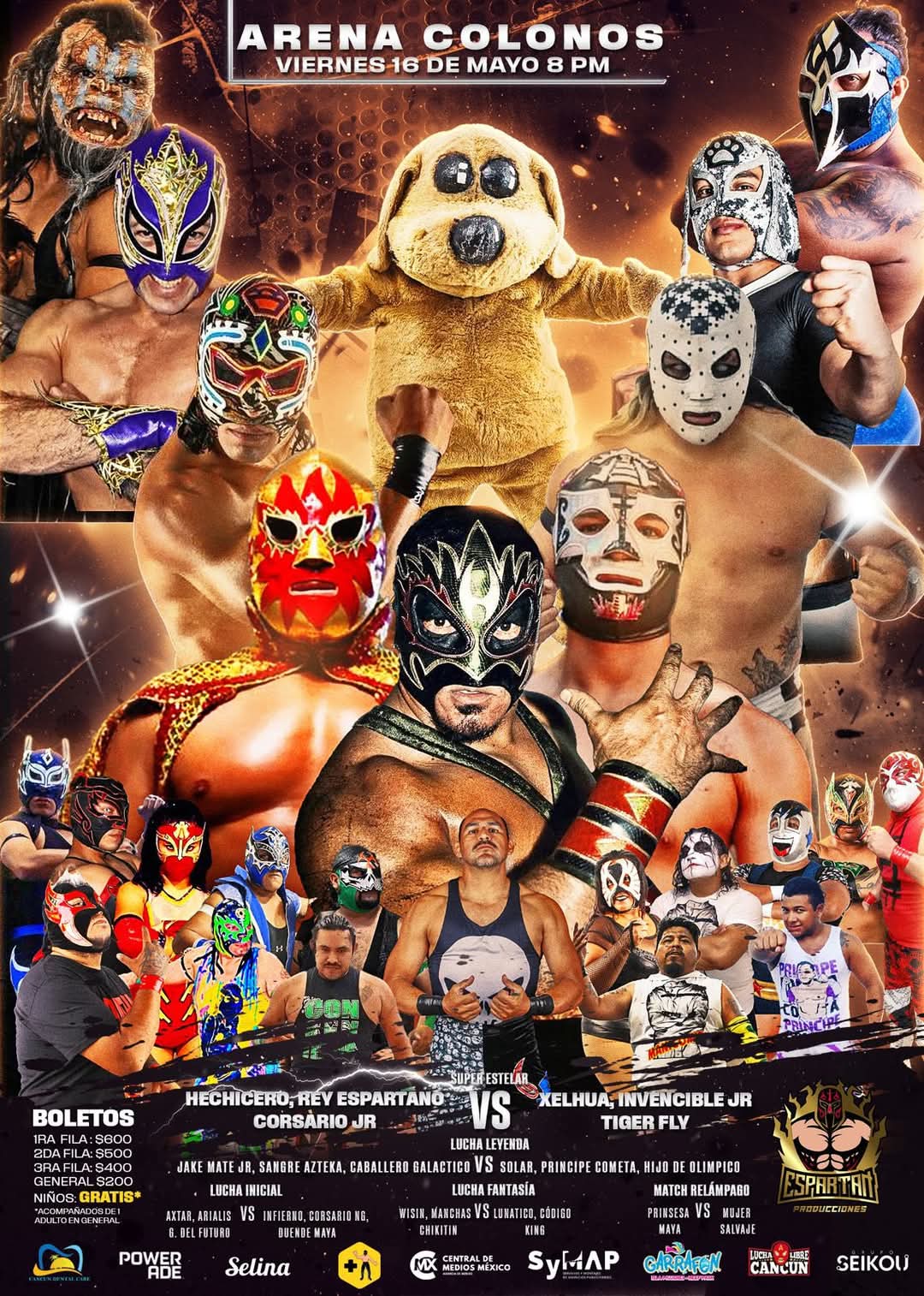 CANCÚN, Q. ROO a 8 de mayo.- La Lucha Libre no se detiene en Cancún, tanto así que para la próxima semana habrá funciones tanto el jueves 15 de mayo en “El Emparrillado”, como el viernes 16 de mayo en la Arena “Colonos“, y precisamente esta última será organizada por Espartan Producciones, la cual preside Rey Espartano, quien también participará en dicha cartelera, en la que se tendrán cinco batallas y en la que se contará con figuras actuales del Consejo Mundial de Lucha Libre (CMLL).