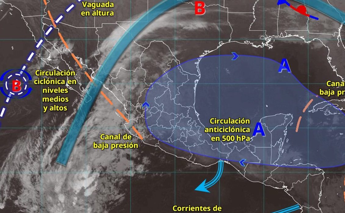 Esta configuración atmosférica favorece estabilidad, menor desarrollo de nubes de tormenta y ambiente seco en la mayor parte del territorio yucateco.