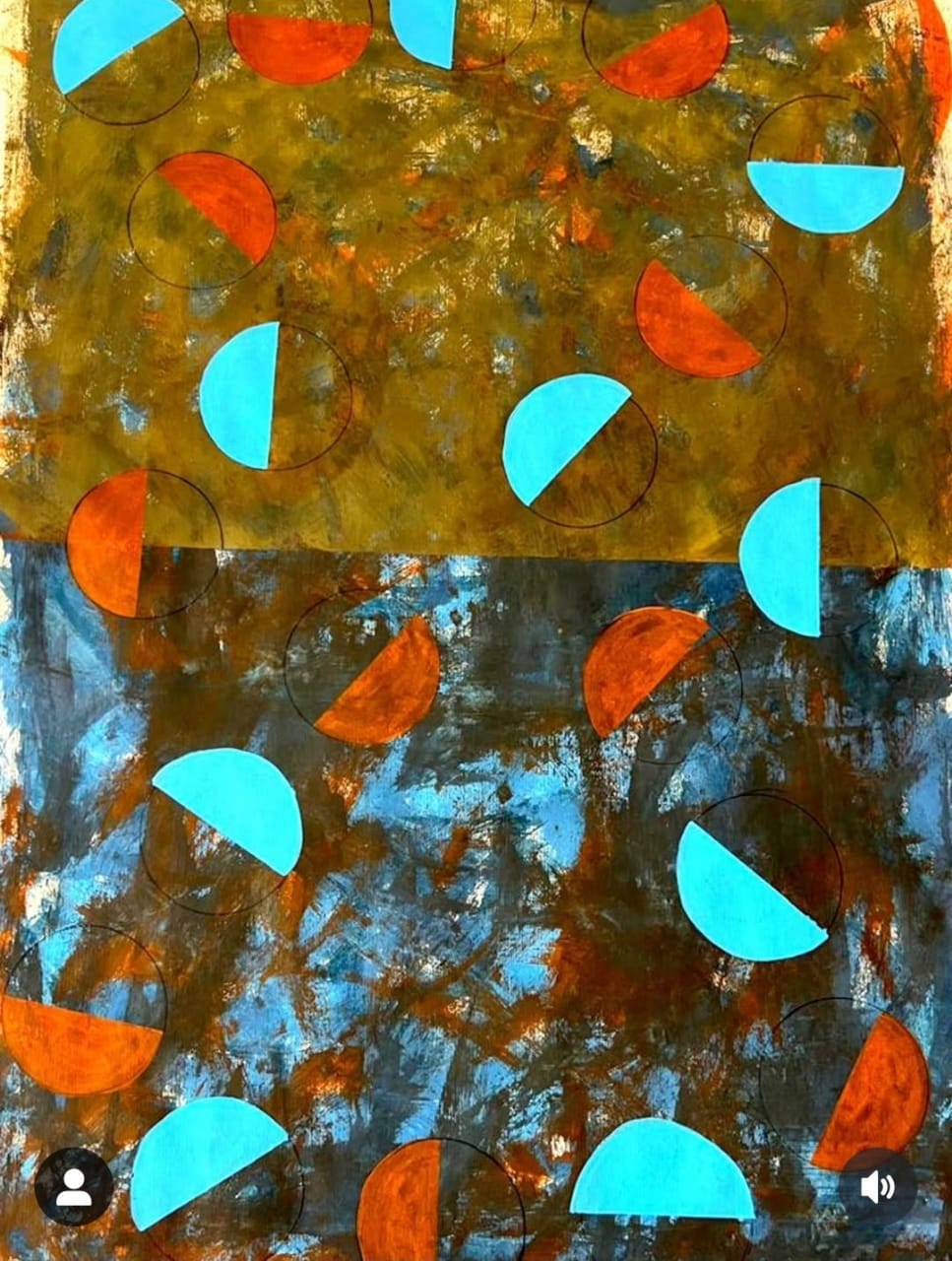 Las pinturas se componen de elementos que nos pueden evocar a la representación de estados mentales más profundos e introspectivos, que sugieren imágenes hipnóticas, diluidas y rítmicas.