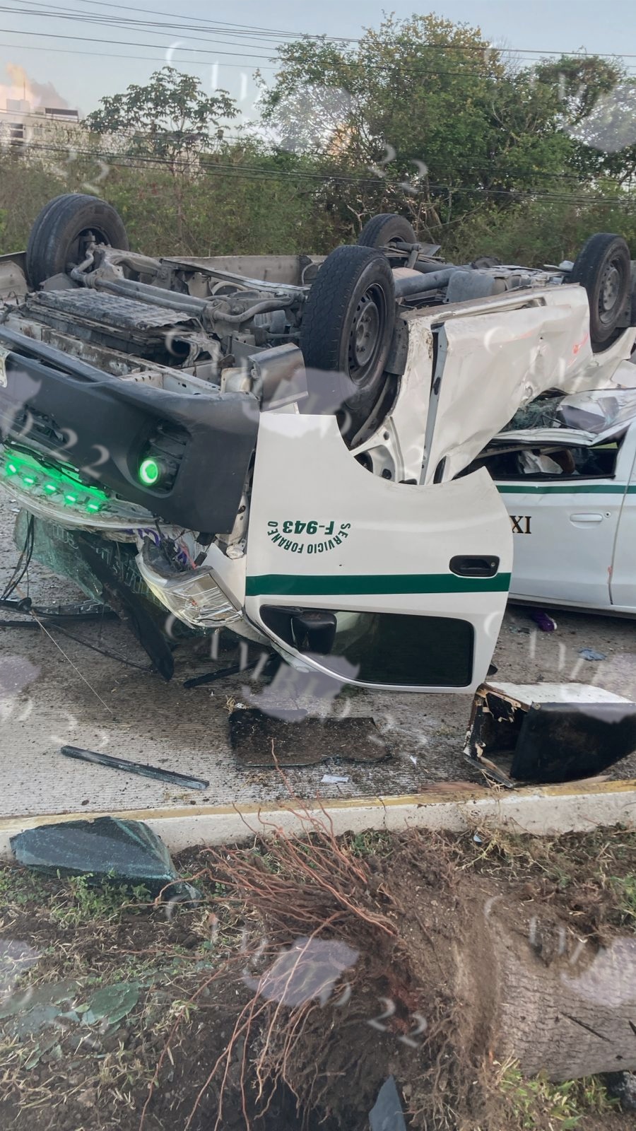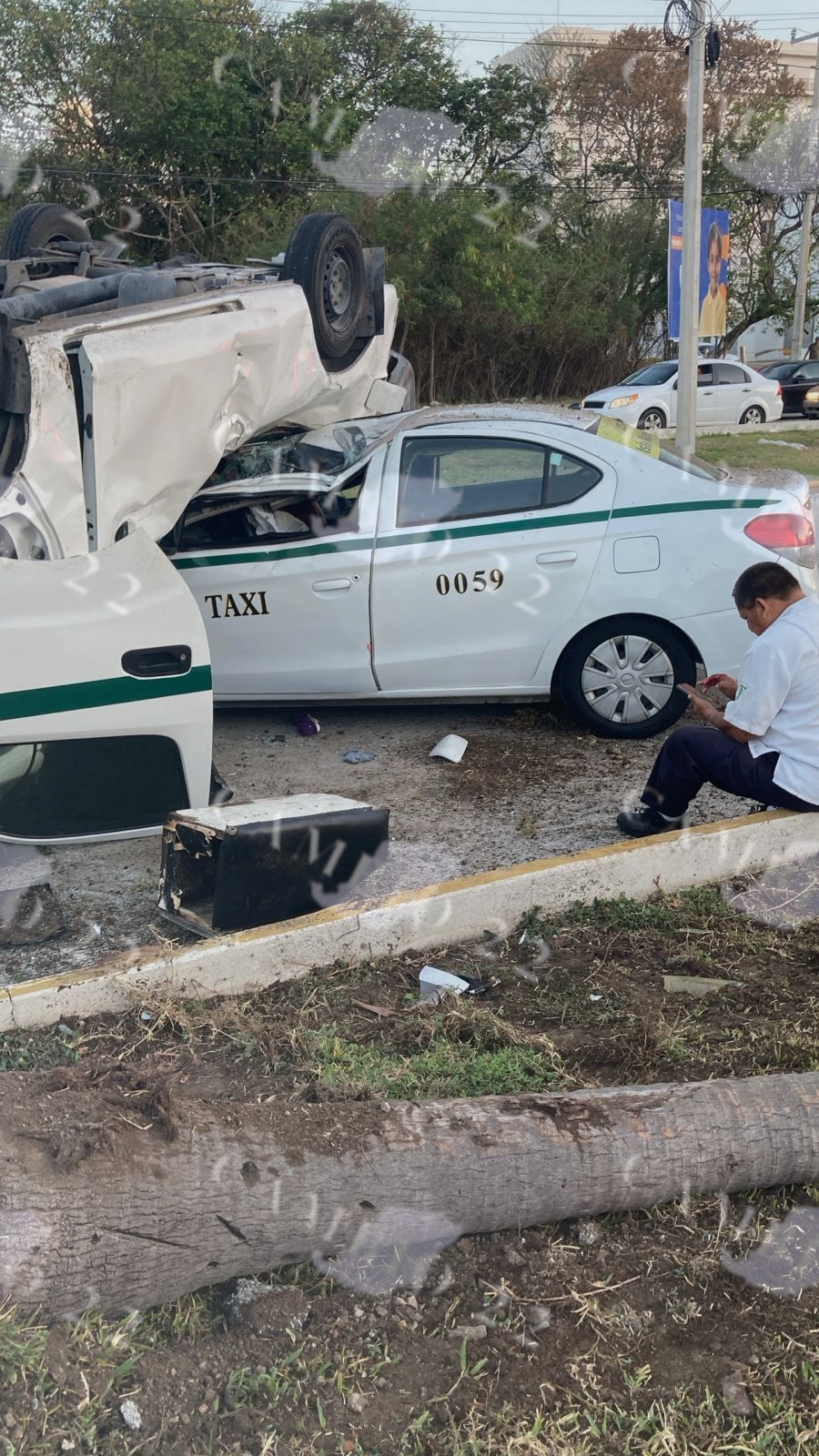 Tras el impacto, la unidad colectiva perdió el control, cruzó el camellón y se estrelló contra un taxi tipo Aveo, también del mismo sindicato, con número 0059, quedando prácticamente encima de él.