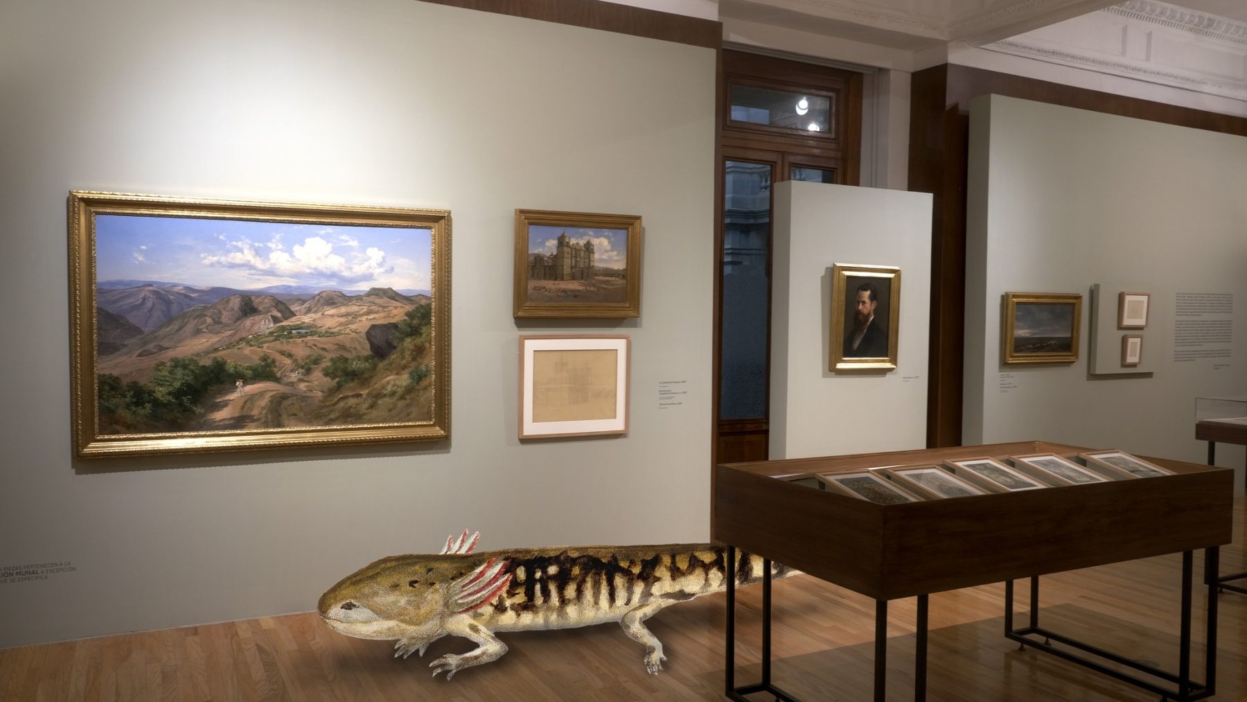 De color atigrado y habitante del Valle de México, la variante de ajolote que obsesionó al paisajista José María Velasco motivó más de diez años de observación e investigación científica. Actualmente, el público puede conocer estos estudios en la exposición José María Velasco. Los apuntes del pintor, que presenta el Museo Nacional de Arte (MUNAL), recinto del Instituto Nacional de Bellas Artes y Literatura (INBAL).