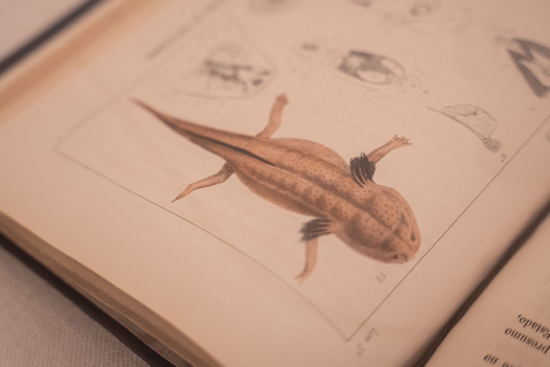 “Velasco los bautizó como Siredon tigrina, pero fue el zoólogo de origen francés Alfredo Dugès quien propuso cambiar el nombre a Ambystoma velasci en homenaje al pintor”, explicó el curador e investigador Ramón Avendaño. El especialista detalló que el museo conserva las tres litografías donde el artista registró la anatomía de la especie, así como los tres volúmenes de la revista La Naturaleza, órgano de la Sociedad Mexicana de Historia Natural, en los que publicó su investigación.