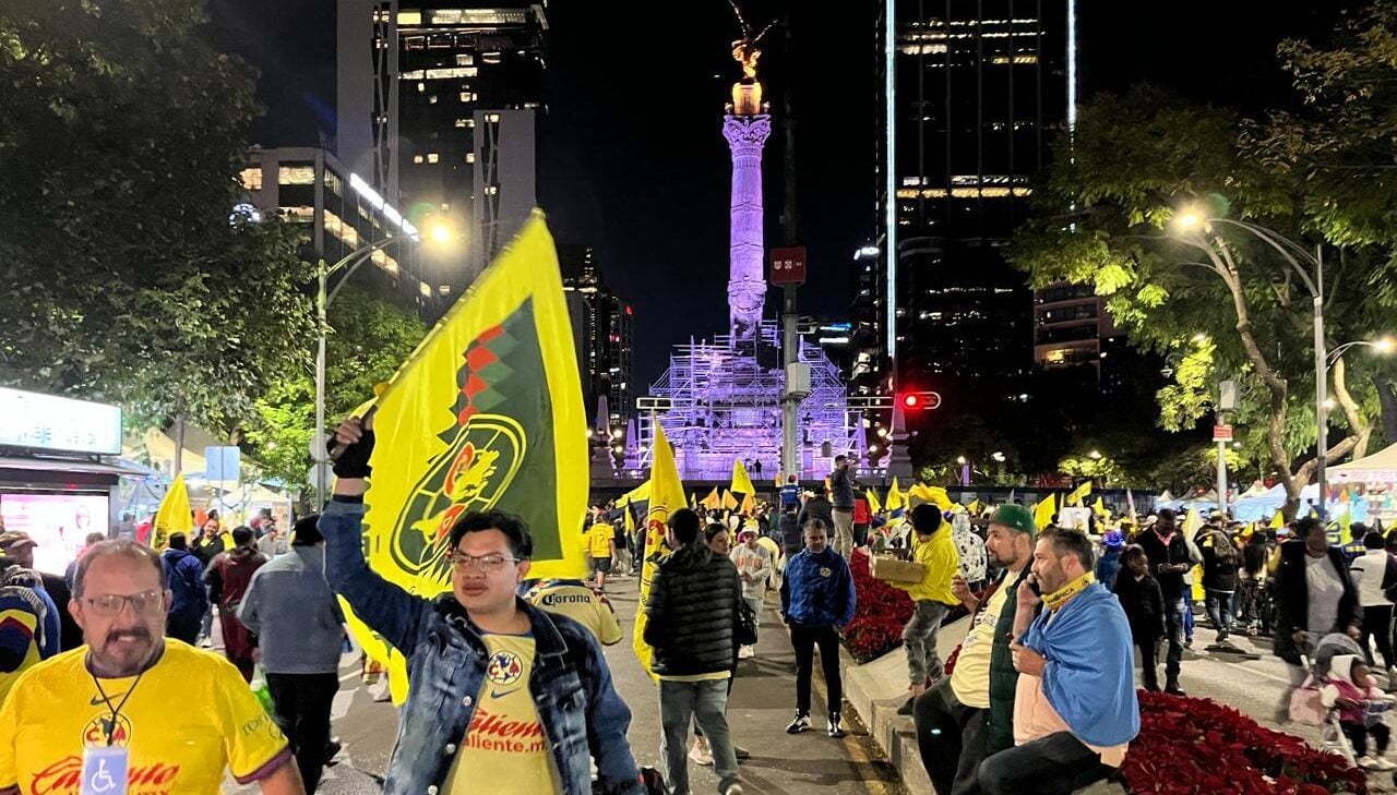 Luego de que las Águilas del América consiguieron coronarse como tricampeones del fútbol mexicano, miles de aficionados se dieron cita en el monumento que ha servido para la celebración de las grandes hazañas.