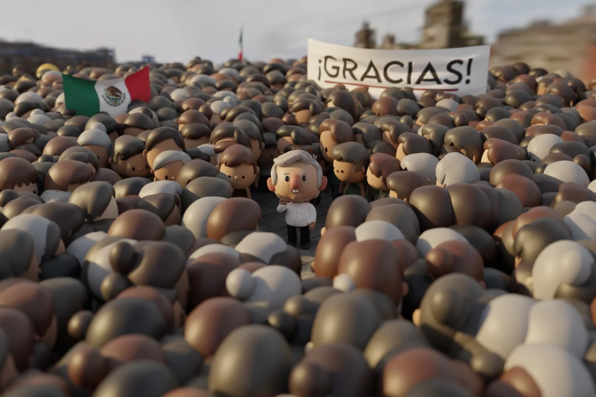 La animación presentada al inicio de la última conferencia matutina de AMLO, el pasado 30 de septiembre de 204, fue animado por ‘Tía María’, quien también ha hecho varias imágenes de AMLO y la actual presidenta, Claudia Sheinbaum; el diseño sonoro corrió a cargo de Ricardo Barreda y la música por Eder Villalpando.