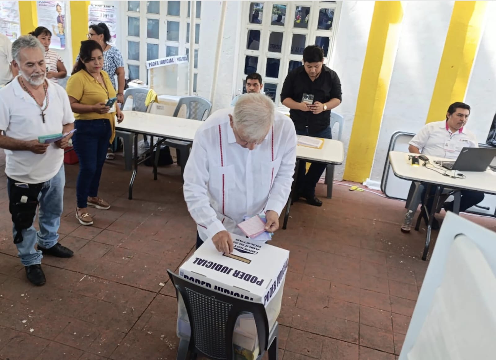 “Es la primera vez en la historia de nuestro país que el pueblo, de manera directa, elige a jueces, magistrados y ministros del Poder Judicial”, declaró con énfasis López Obrador al ser abordado por medios locales. “Por eso quise participar de esta histórica elección”, añadió.