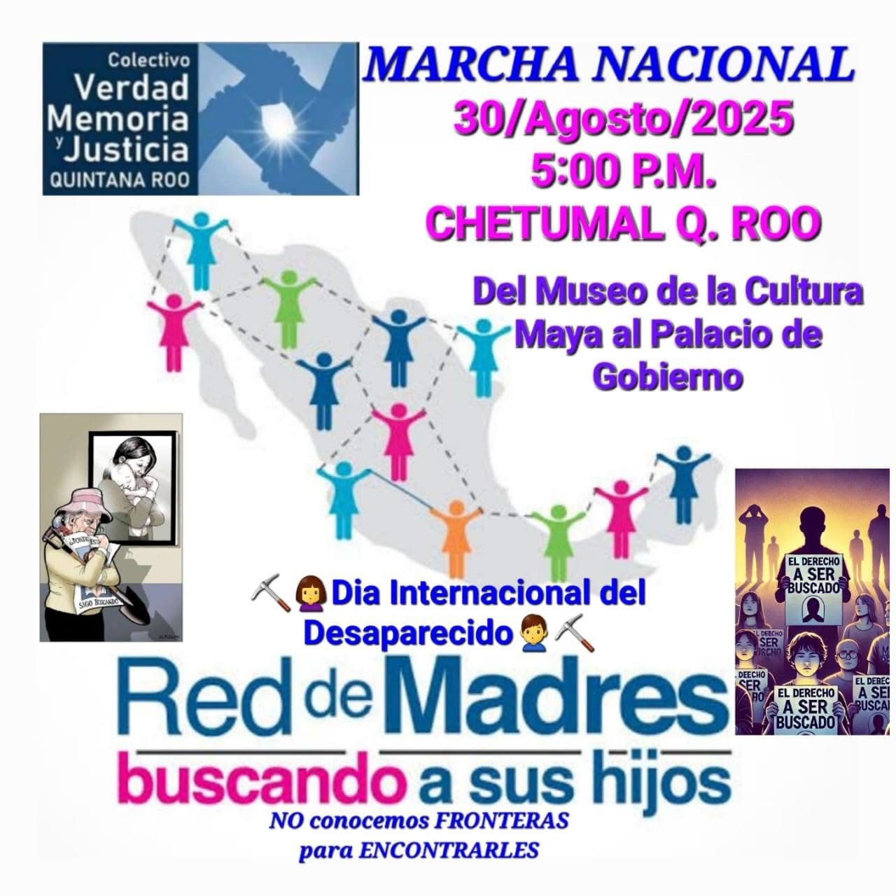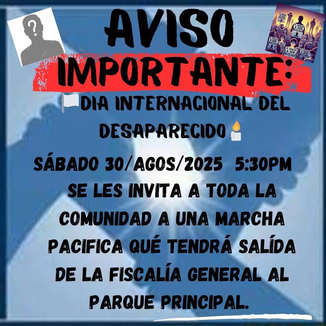 Este viernes, en diferentes municipios de Quintana Roo, colectivos y familias se movilizarán en calles y plazas para exigir justicia, verdad y seguridad, recordando a las autoridades que las desapariciones forzadas siguen siendo una herida abierta y que la deuda con las víctimas continúa pendiente.
