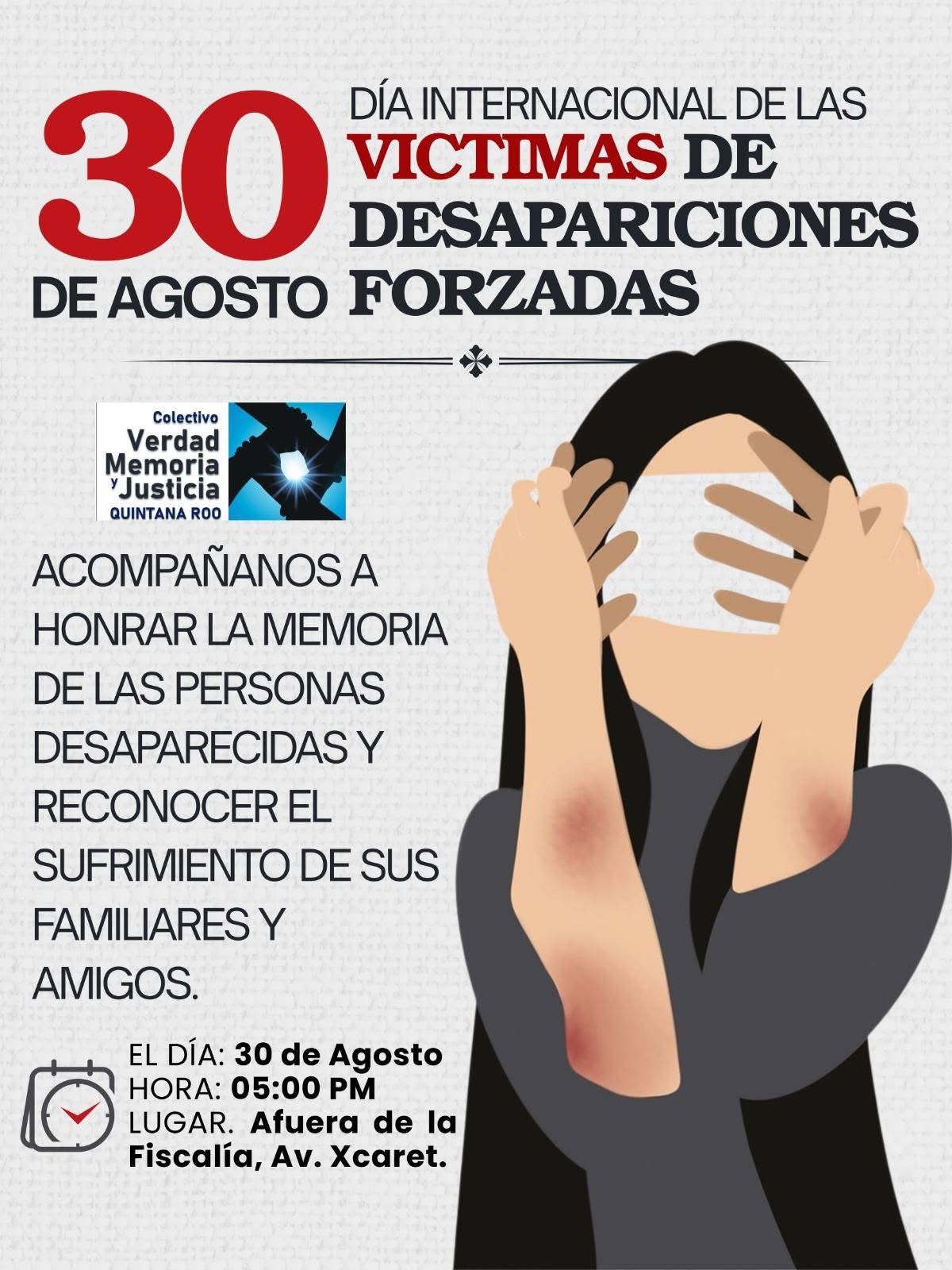 Este viernes, en diferentes municipios de Quintana Roo, colectivos y familias se movilizarán en calles y plazas para exigir justicia, verdad y seguridad, recordando a las autoridades que las desapariciones forzadas siguen siendo una herida abierta y que la deuda con las víctimas continúa pendiente.