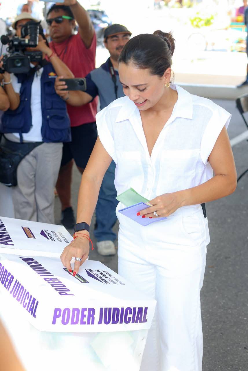 Tras participar en el proceso, la alcaldesa compartió un mensaje en el que destacó la relevancia de este ejercicio democrático sin precedentes, e hizo un llamado a las y los cancunenses a acudir a las urnas con responsabilidad y compromiso.