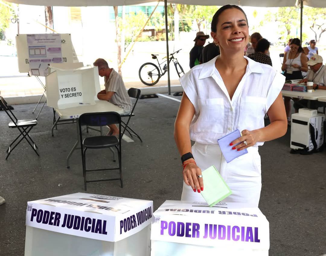Cancún, 1 de junio. — La presidenta municipal de Benito Juárez, Ana Paty Peralta, acudió este domingo a emitir su voto en el marco de la histórica jornada electoral en la que, por primera vez en el país, la ciudadanía elige de manera directa a quienes integrarán el Poder Judicial.