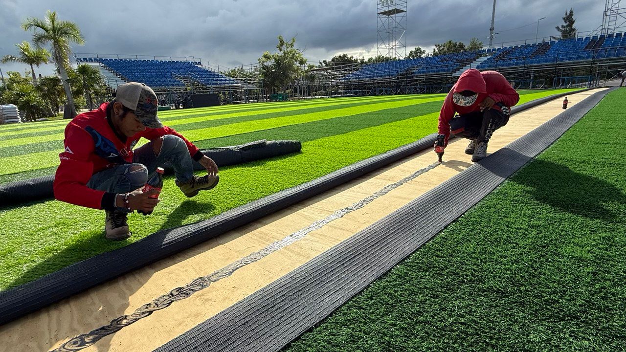 Asimismo, los límites del estadio ya están marcados, mostrando el impacto visual que tendrá sobre el paisaje de Malecón Tajamar. En la zona central del campo, la superficie fue nivelada y acondicionada, y ahora presume la instalación del césped artificial, garantizando un escenario a la altura de la competencia mundial.