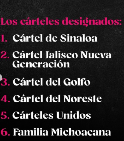 ¿Cuáles son los seis cárteles mexicanos designados como terroristas?