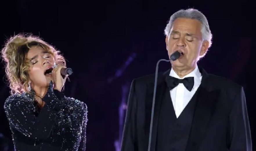 Luego se unió a Bocelli para entonar el clásico ‘Vivo por ella’, que generó ovaciones y gestos de afecto entre asistentes provenientes principalmente de América Latina. Para muchos, el evento fue presentado como una fecha histórica.