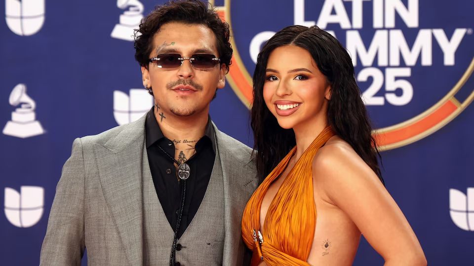 Ángela y Christian Nodal llegaron juntos a la premiación, acaparando reflectores con estilo, elegancia y un look completamente renovado.